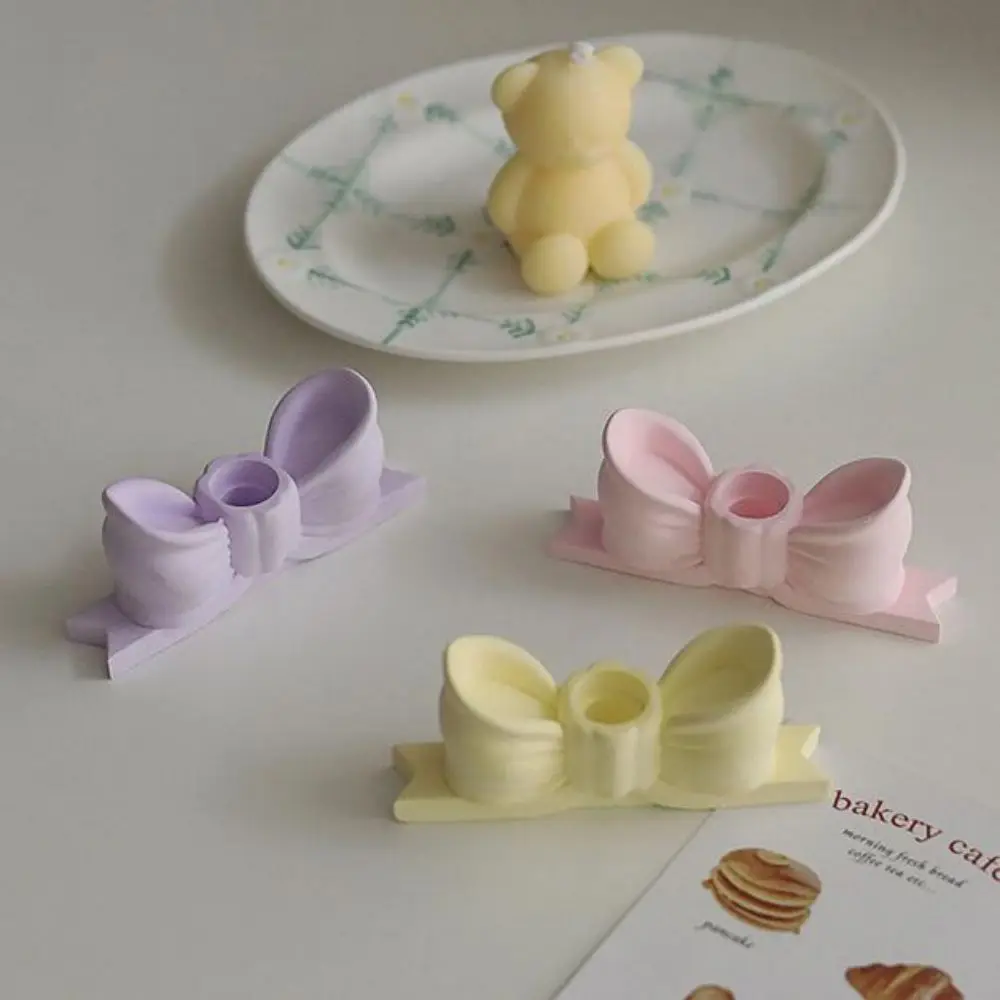 Candlestick Candle Holder Gypsum Bow Candles Candelabra Home Decorative Candle Wedding Dinning Birthday Gift Party Home Props
