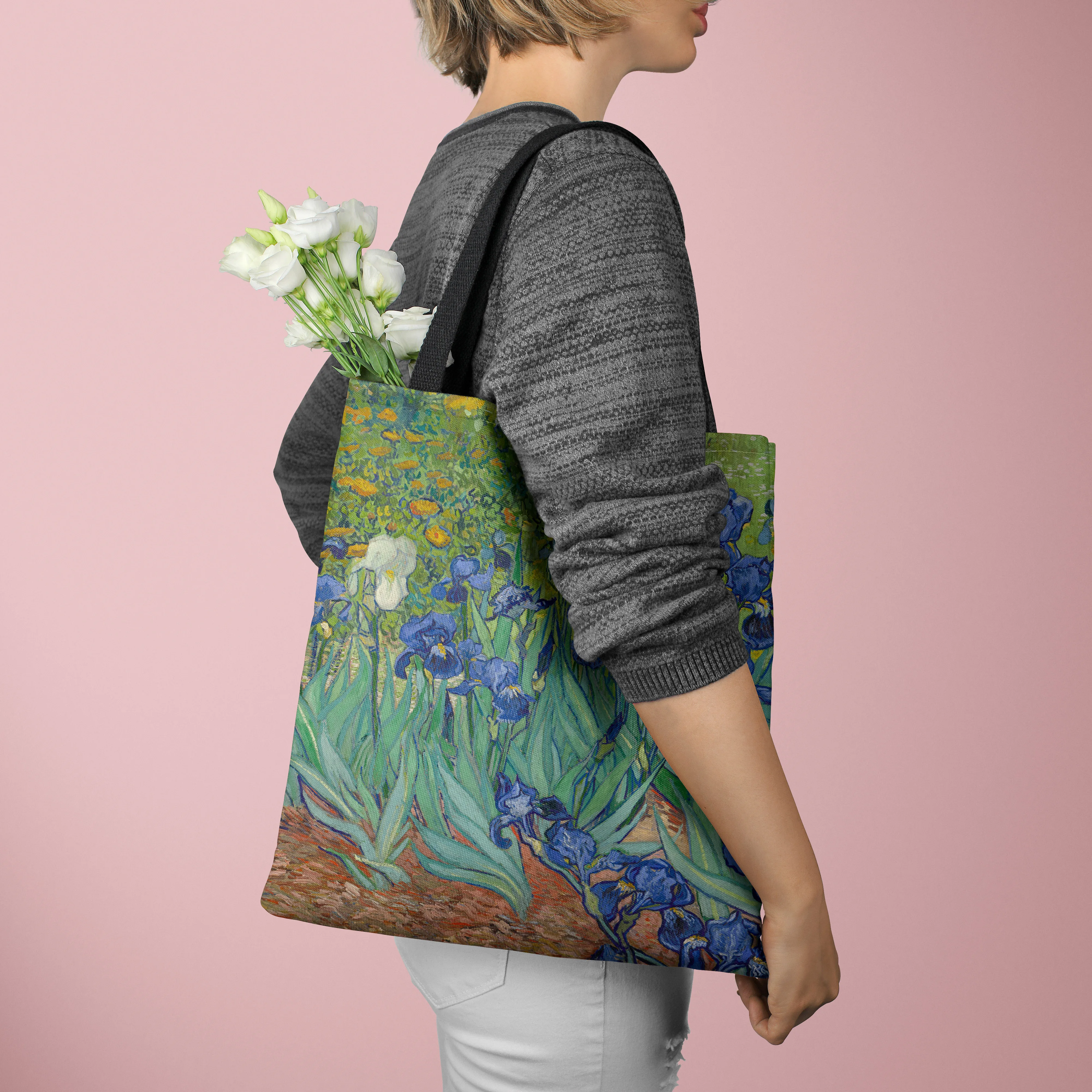 [Canvas Bag] Oil Painting Printed Canvas Bag Women’s Lightweight Tote Bag Daily Handbag Multi-functional Shopping Bag