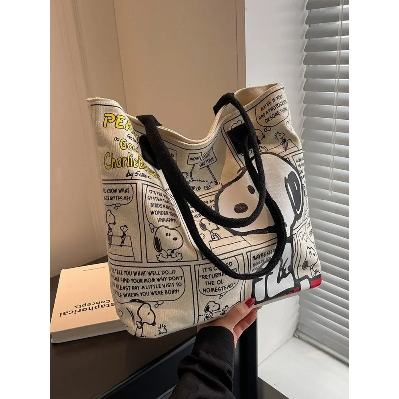 Canvas Bag Women’s Summer Large Capacity Bag 2023 New Trendy Cartoon Snoopy Tote Bag Versatile Shoulder Tote Bag