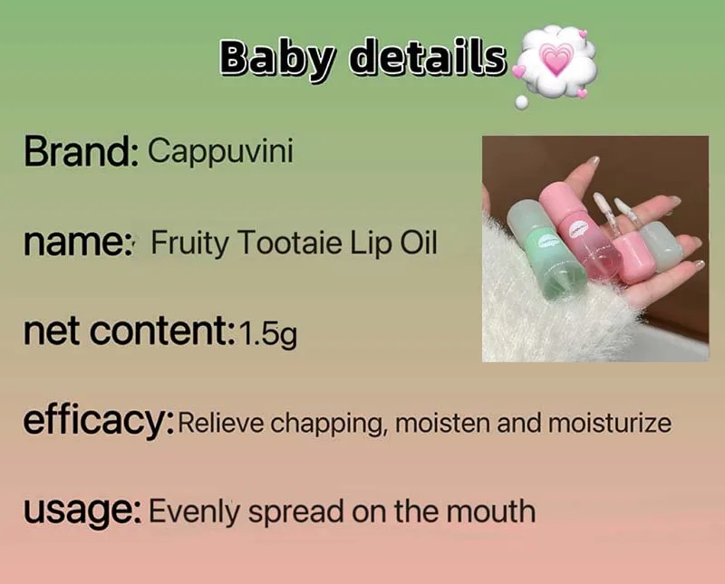 Cappuvini Fruity Moisturizing Lip Oil Cear Lip Gloss Glass Lips Reduce Lip Lines Suitable for Lip Care Lip Balm