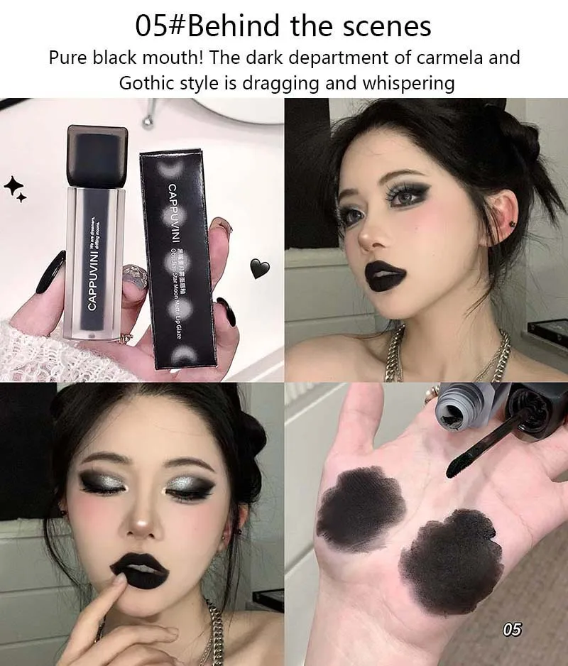 Cappuvini Punk Smoked Black Liquid Lipstick Matte Sexy Red Lip Gloss Waterproof Easy To Color Halloween Makeup Lip Tint Cosmetic