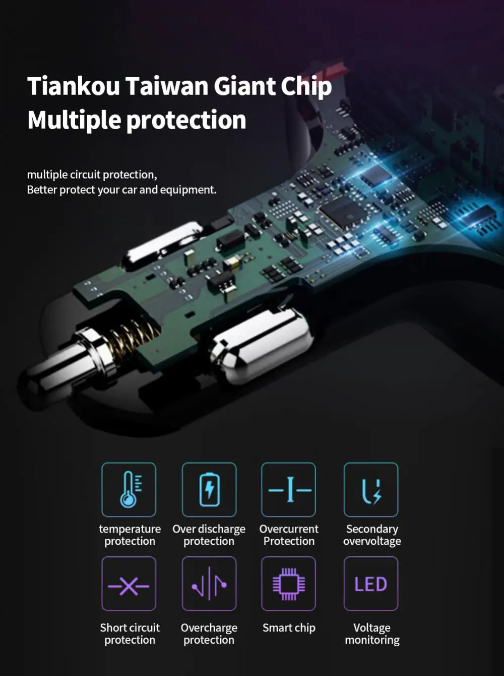 [Dual USB Interfaces] Dual USB interfaces supply power at the same time, built-in management chip, intelligent shunt and fast charging will not hurt the machine