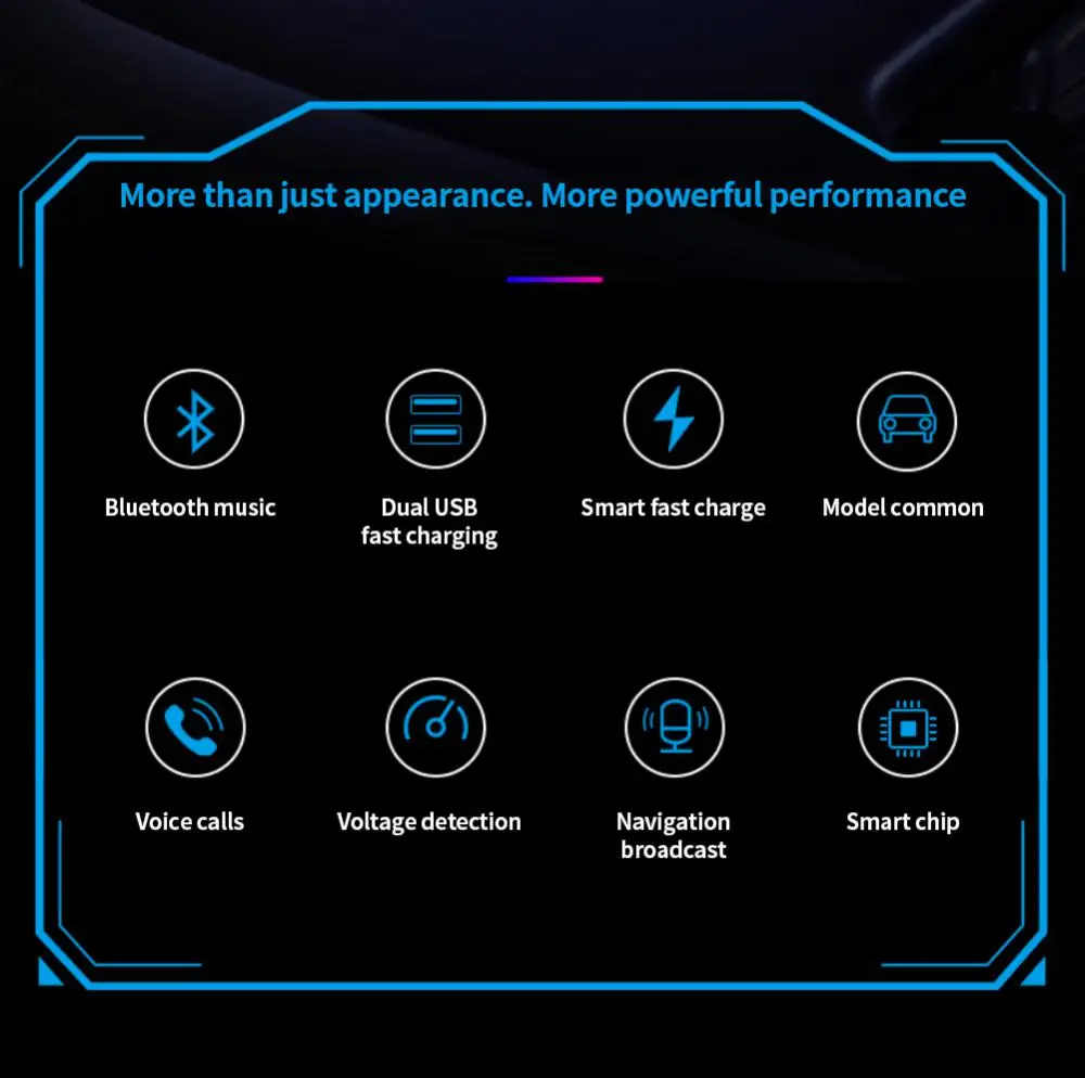 [with digital display] with LED display to display car battery voltage, hands-free call, FM transmission, Bluetooth 5.0 lossless connection, music, navigation broadcast, U disk MP3 playback