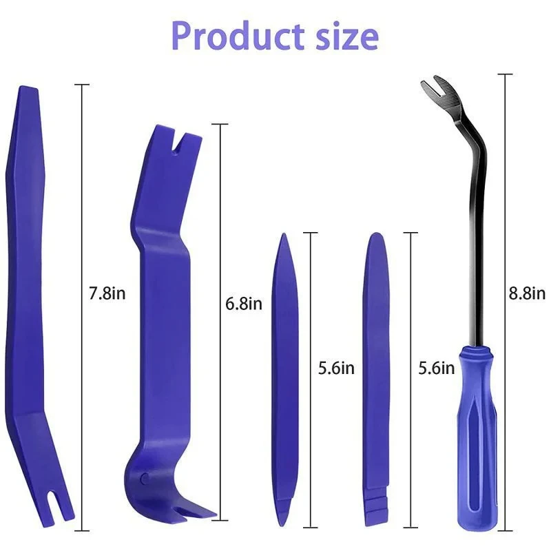7. Works on interior and exterior trim, wide edge remover, narrow edge remover,pull-type remover, handle remover and upholstery clip remover.