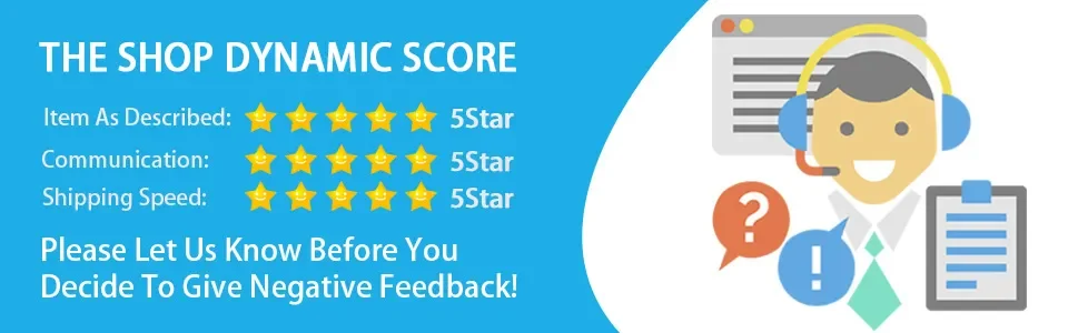 3.If you have any problems with our items or service, plz feel free to contact us anytime before leaving negative feedback. We would give you the best solution,communication can solve everything.
