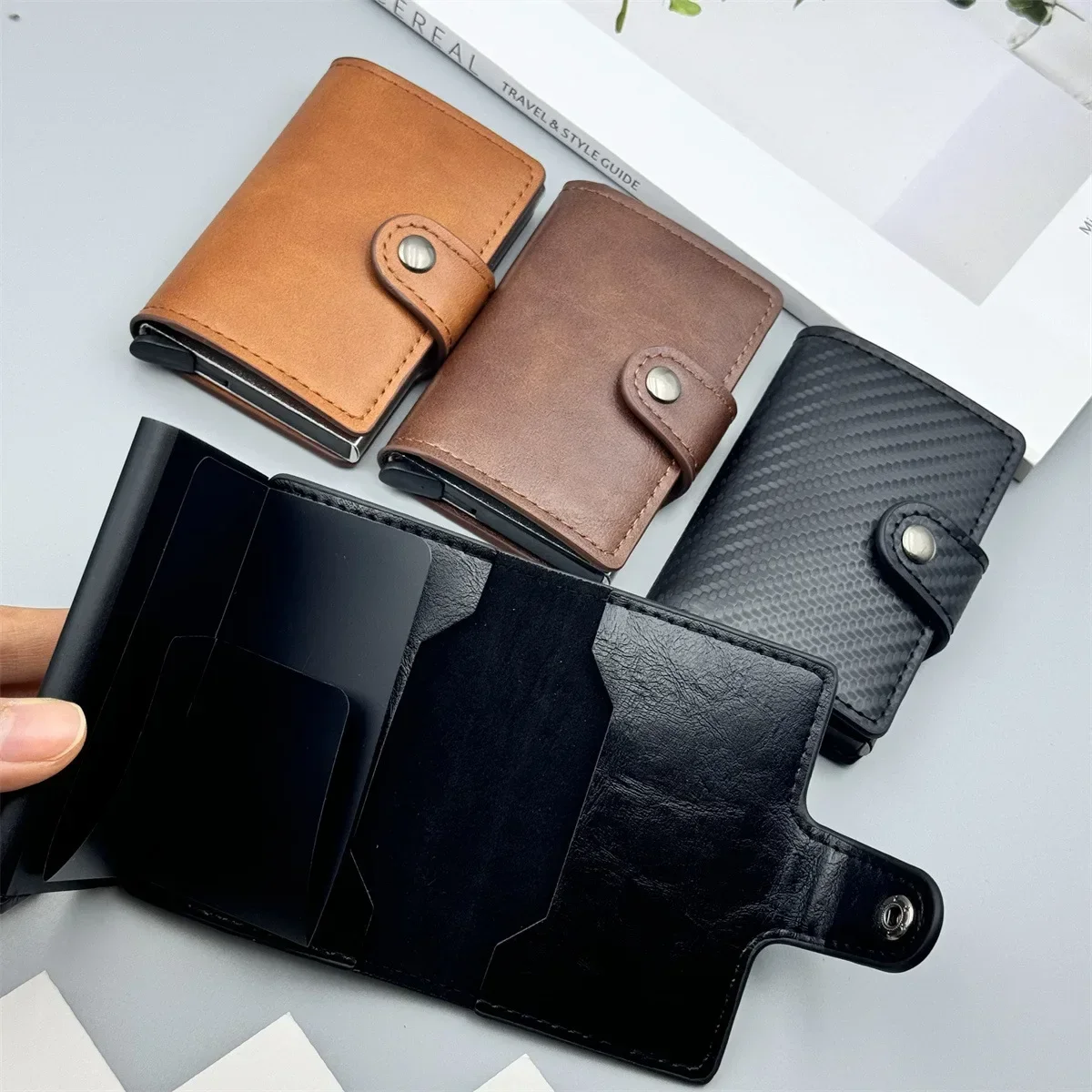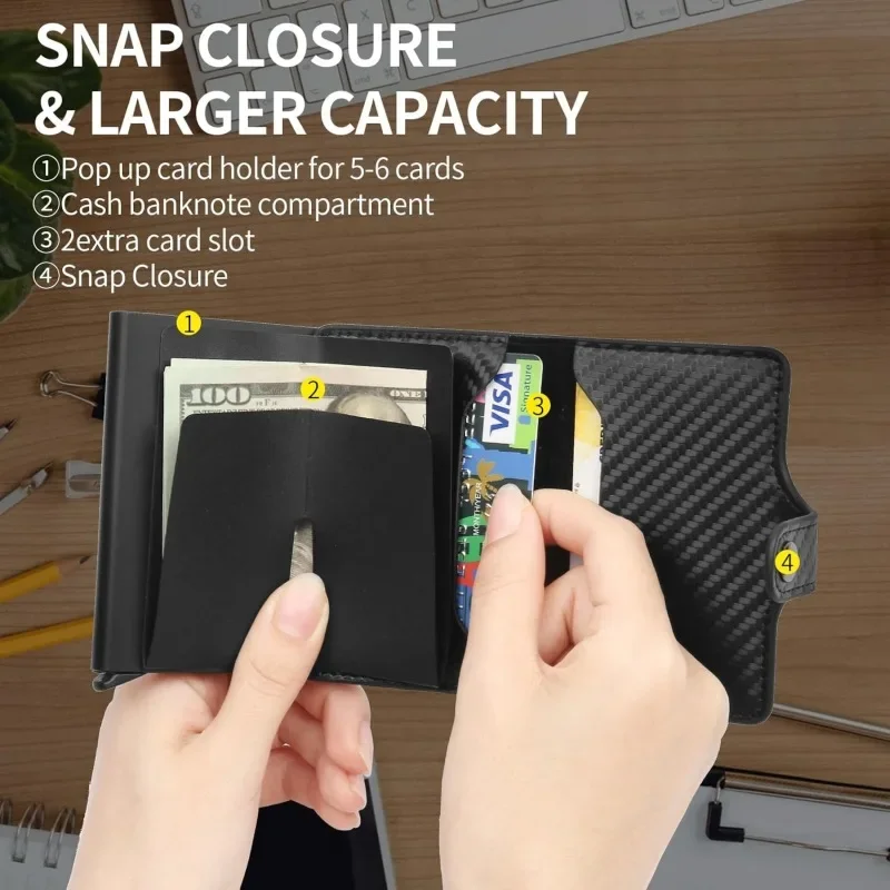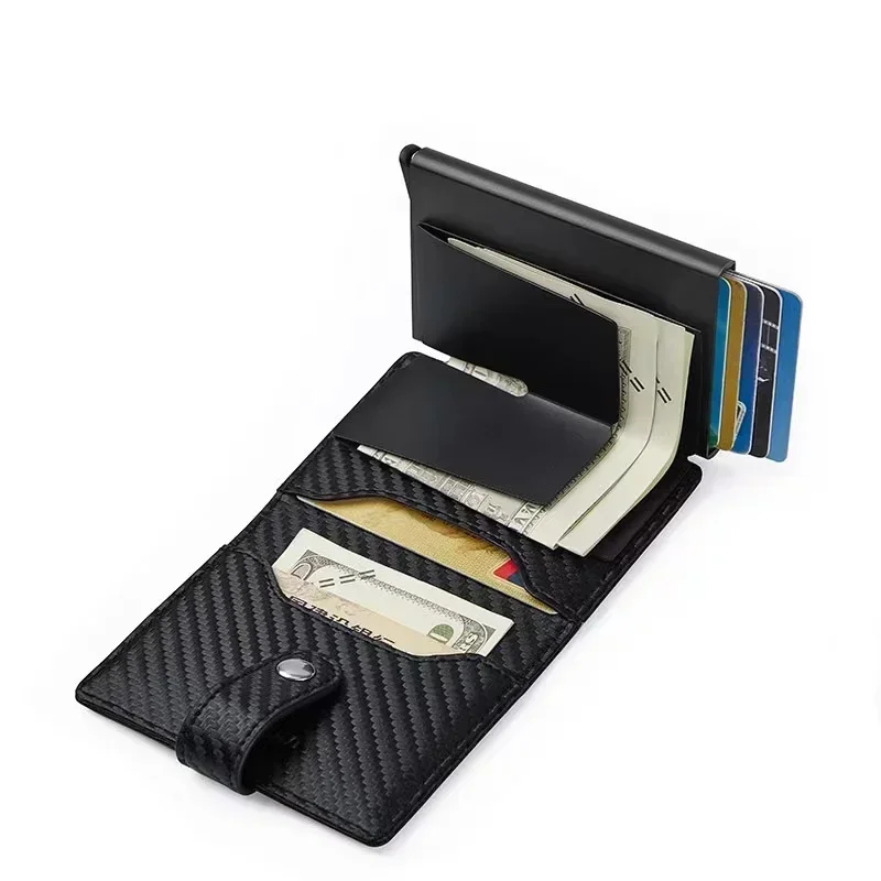 Carbon Fiber Credit Card Holder Wallet Men Rfid Smart Meral Thin Slim Pop Up Minimalist Wallet Small Black Purse Metal Wallet