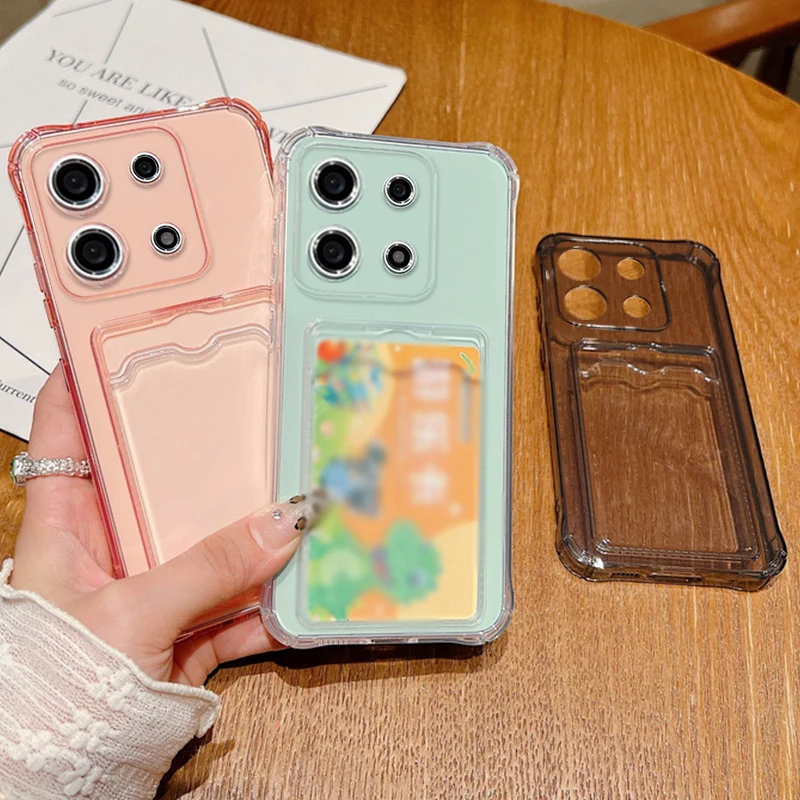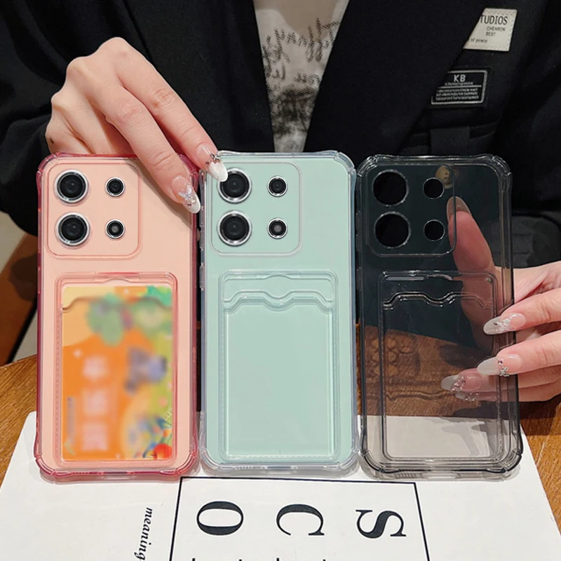 Card Slot Bag Clear Case For Xiaomi Redmi Note 14 11 12 13 Pro 4G 5G 14C 13C Poco X5 X6 F6 M6 Pro 13T 14T Soft TPU Phone Cover