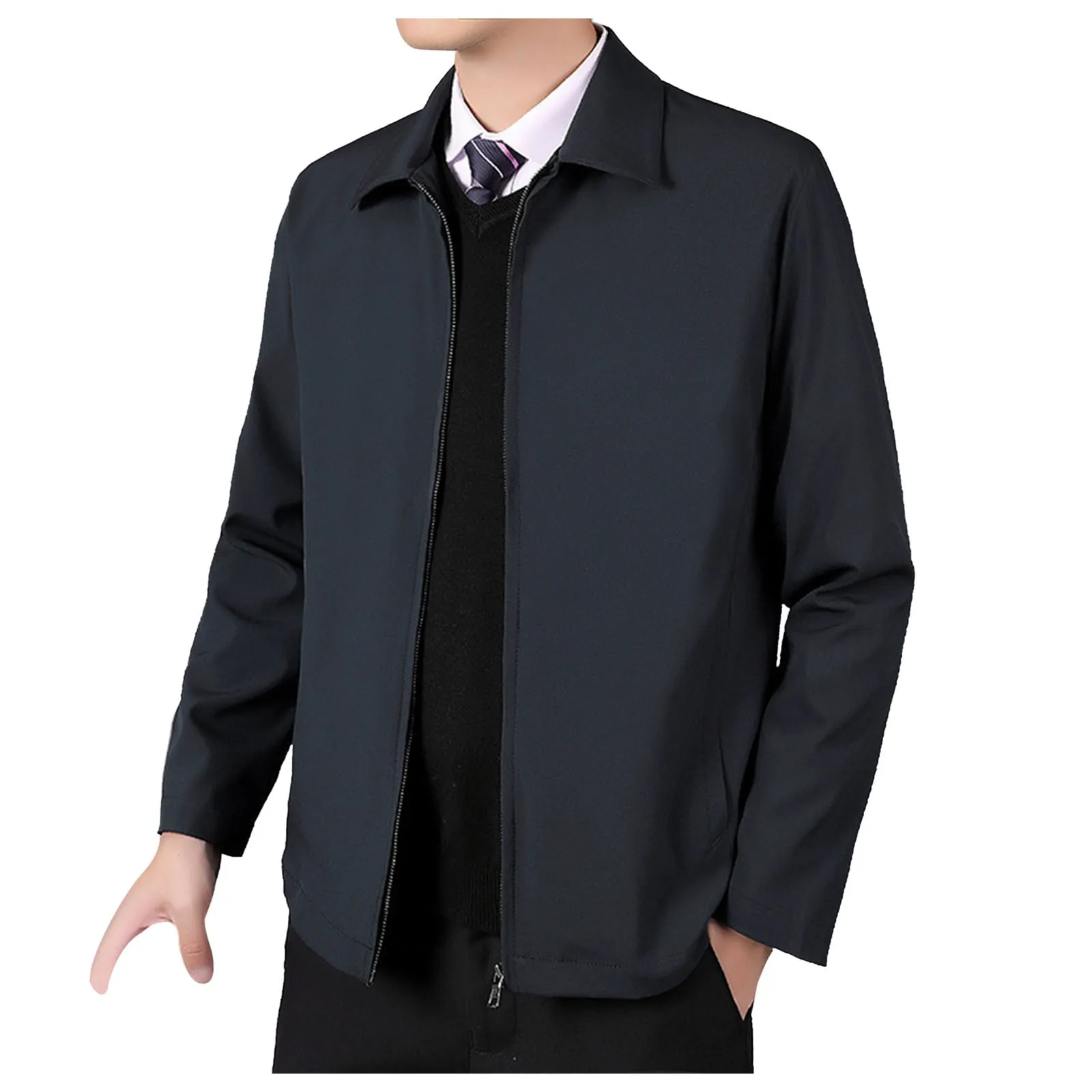 Cardigans For Men Big And Tall Men’S Autumn And Autumn Winter New Mens Jacket Collar Solid Color Jackets Business Casual Coat