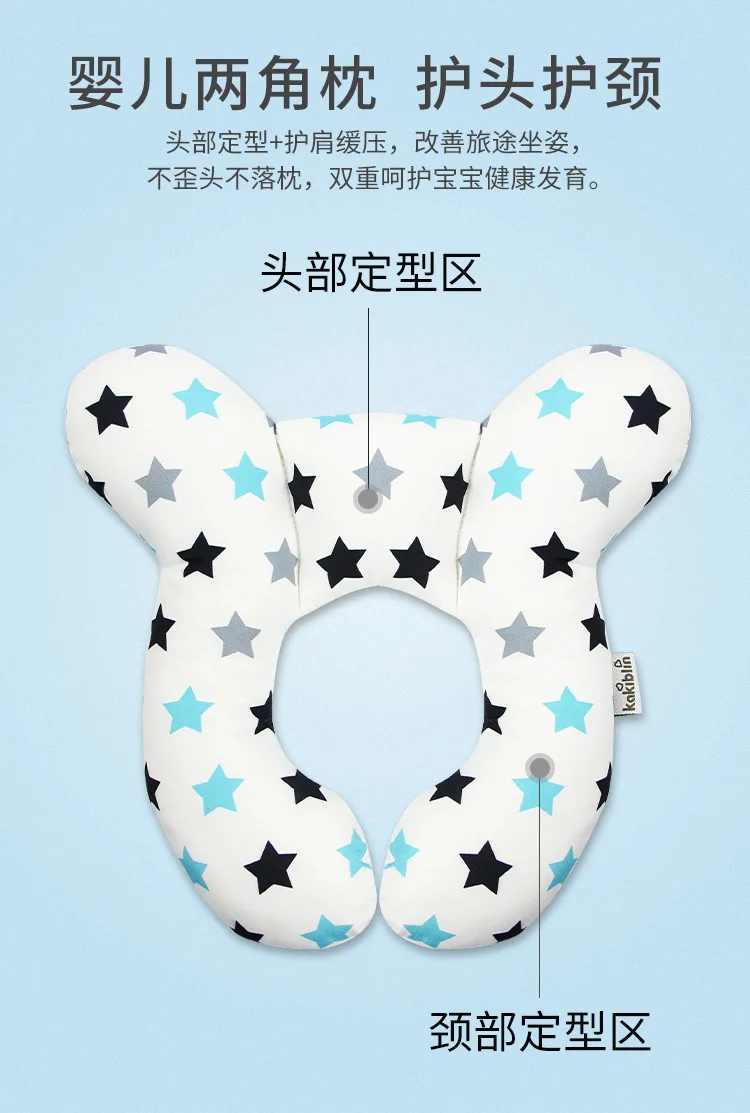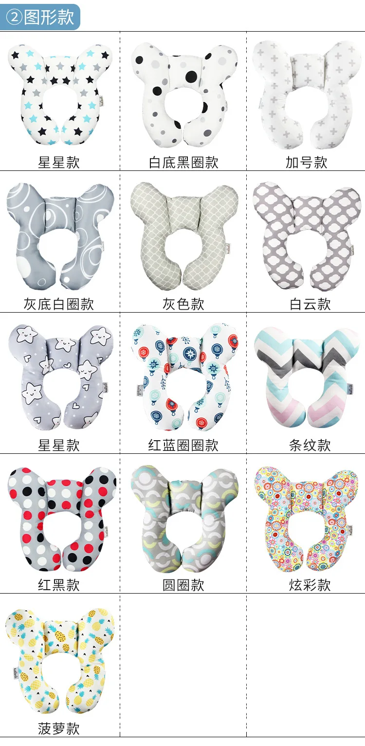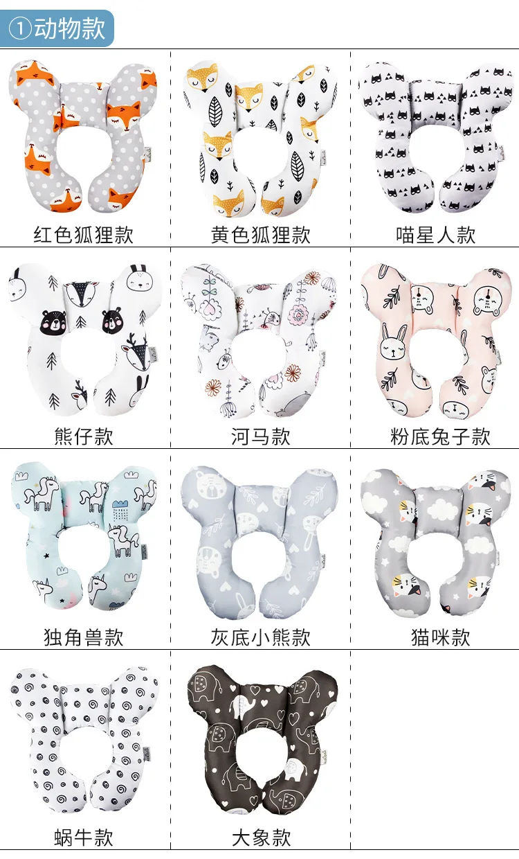 Cartoon Baby Pillow Children’s U-shaped Travel Pillow Cotton Soft Baby Travel Car Children’s Multi-functional Stroller Pillow