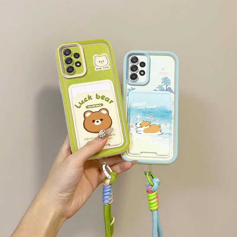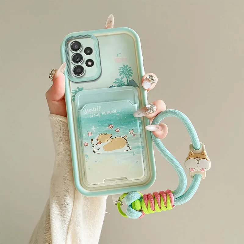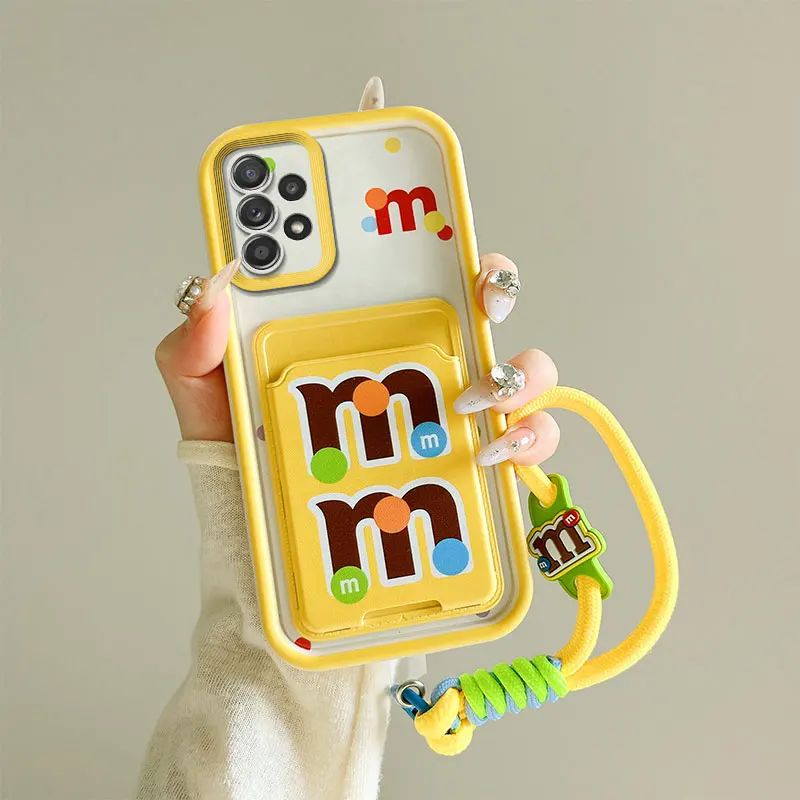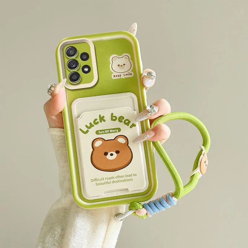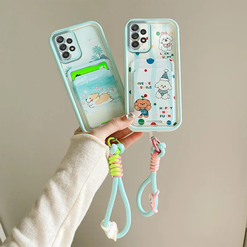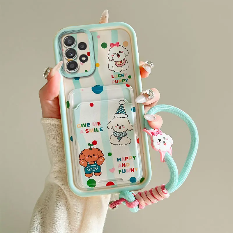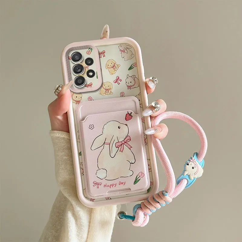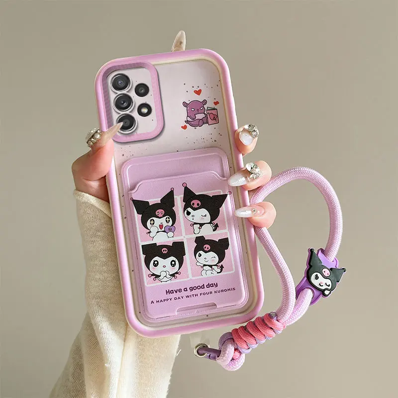 Cartoon Kuromi Rabbit Photo Card Slot Wallet Phone Case For Samsung Galaxy A23 A24 A25 A32 A34 5G F12 M12 M40S Wrist Strap Cover