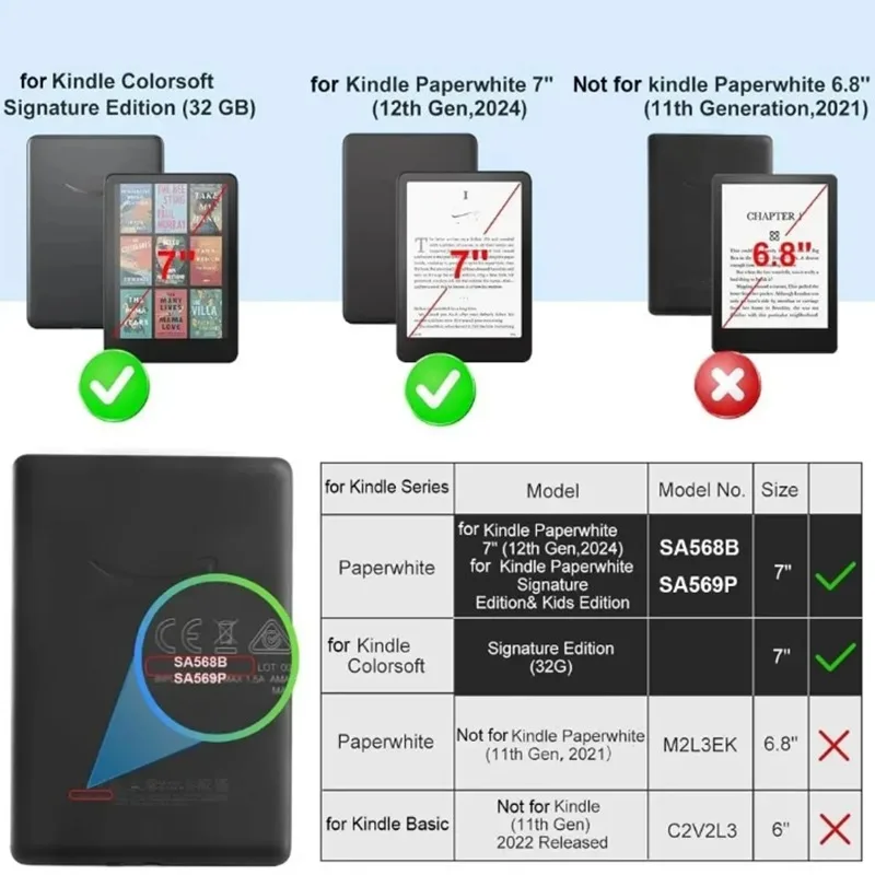 1.For Kindle Paperwhite 2024 kwp6 7inch (12th Generation) Number:SA568B,SA569P