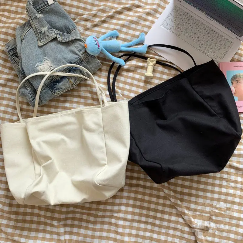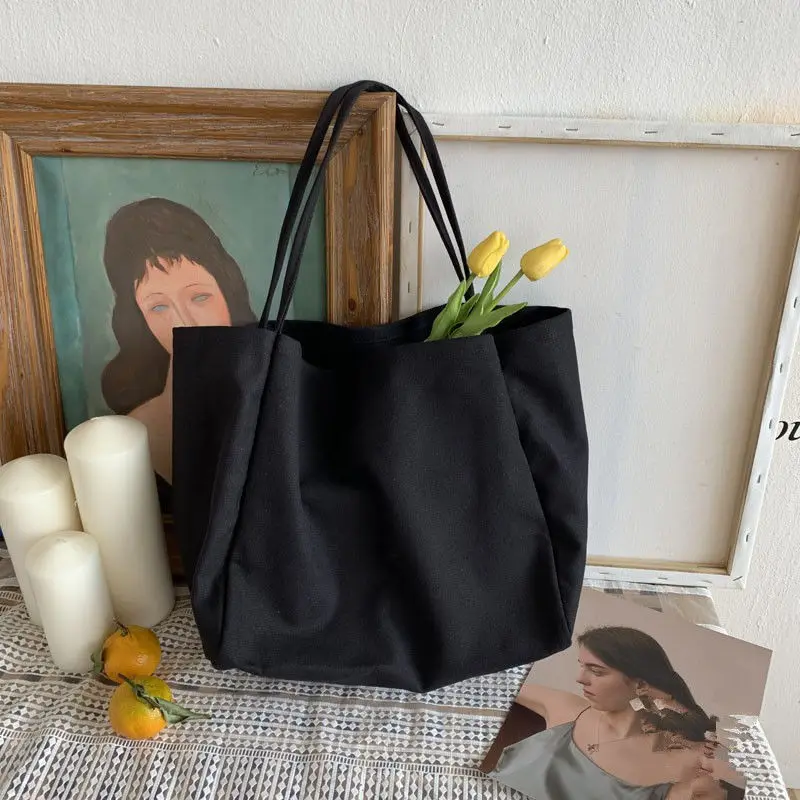 Casual Canvas Shopping Bag High Quality Eco Reusable Grocery Handbag Lightweight Shoulder Bags Large Capacity Daily Tote Pouch