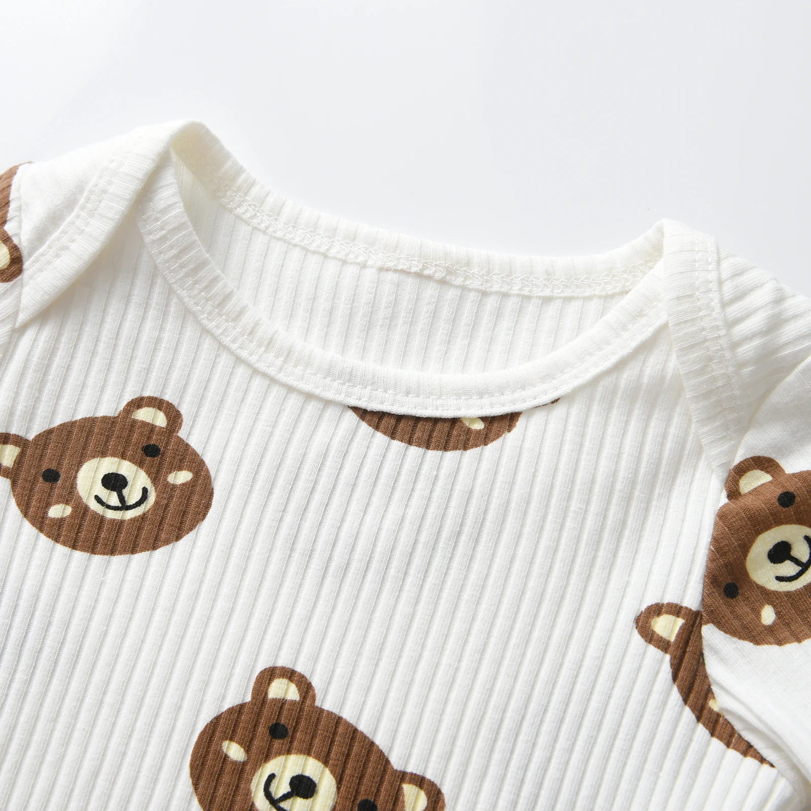 Casual Newborn infant Baby Boy Clothes Set Knitted Long Sleeve Bear Printed Bodysuit Top and Pants Spring Autumn Outfit for Boys