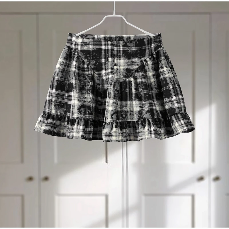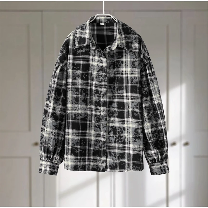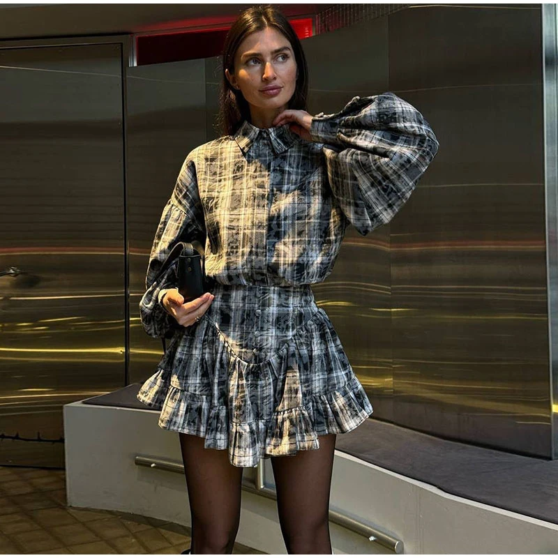 Casual Retro Plaid Women’s Dresses Puff Sleeve Turndown Collar Ruffly Short Dresses Women New Fashion Vintage Loose Dress