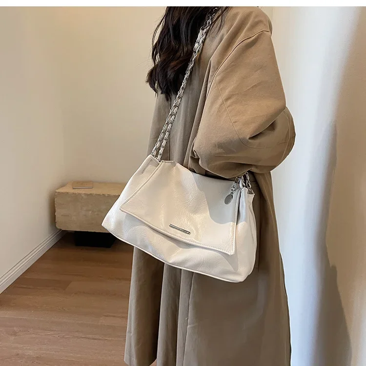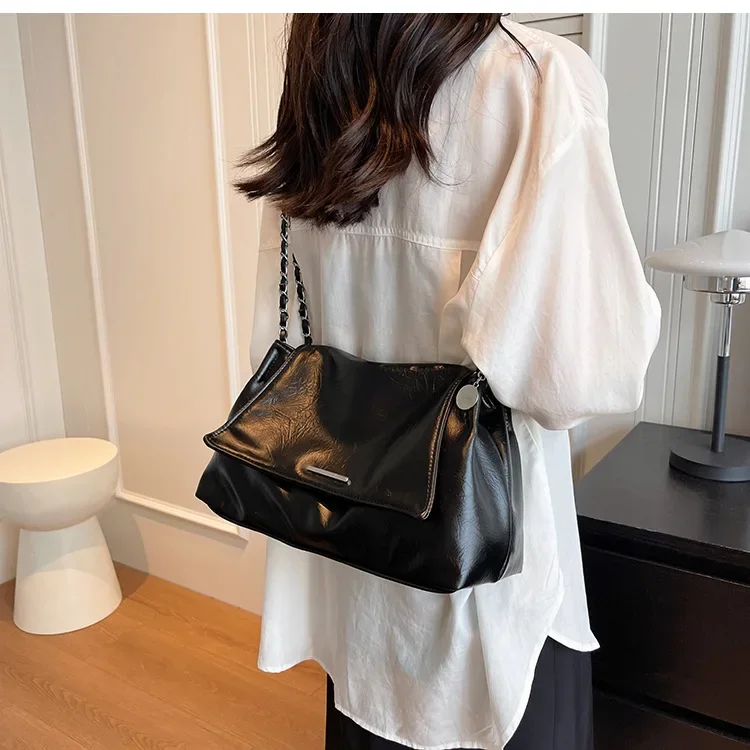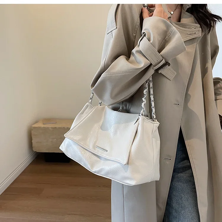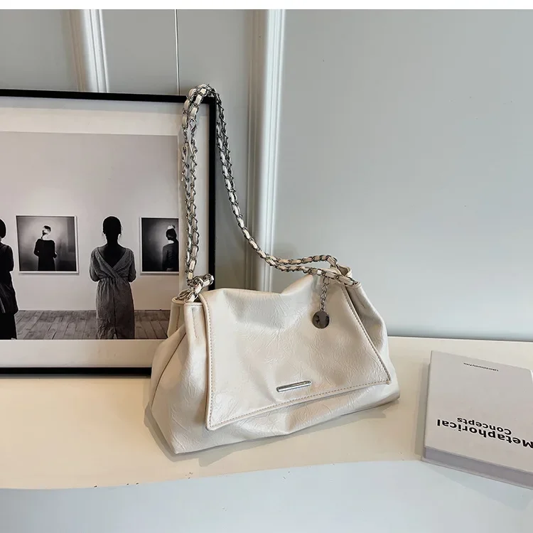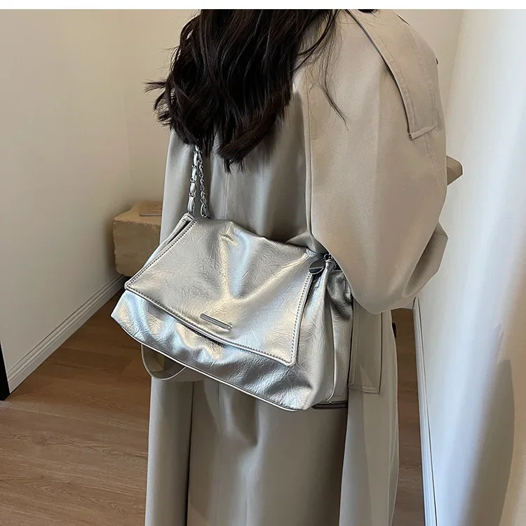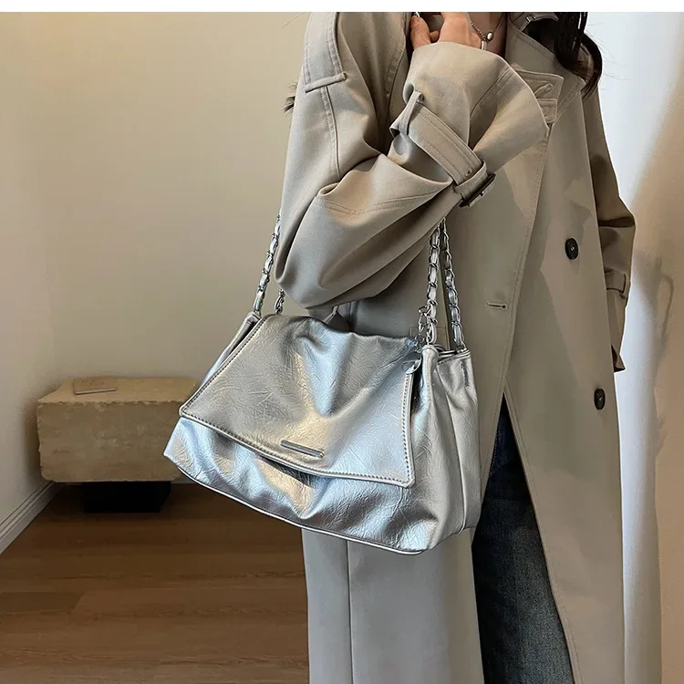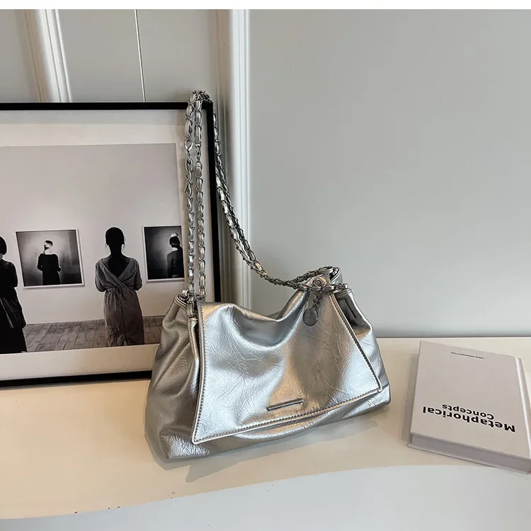 Casual Soft Surface Large Capacity Bag Women 2025 New Popular All-Match Chain Messenger Bag Popular Silver Shoulder Bag Handbag