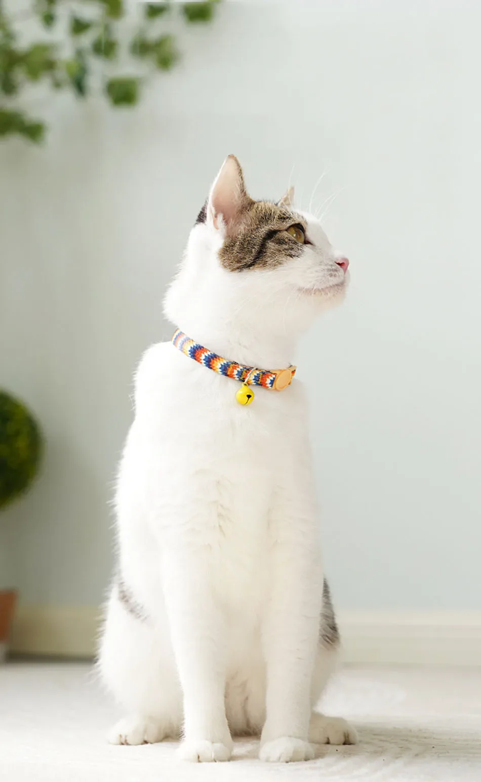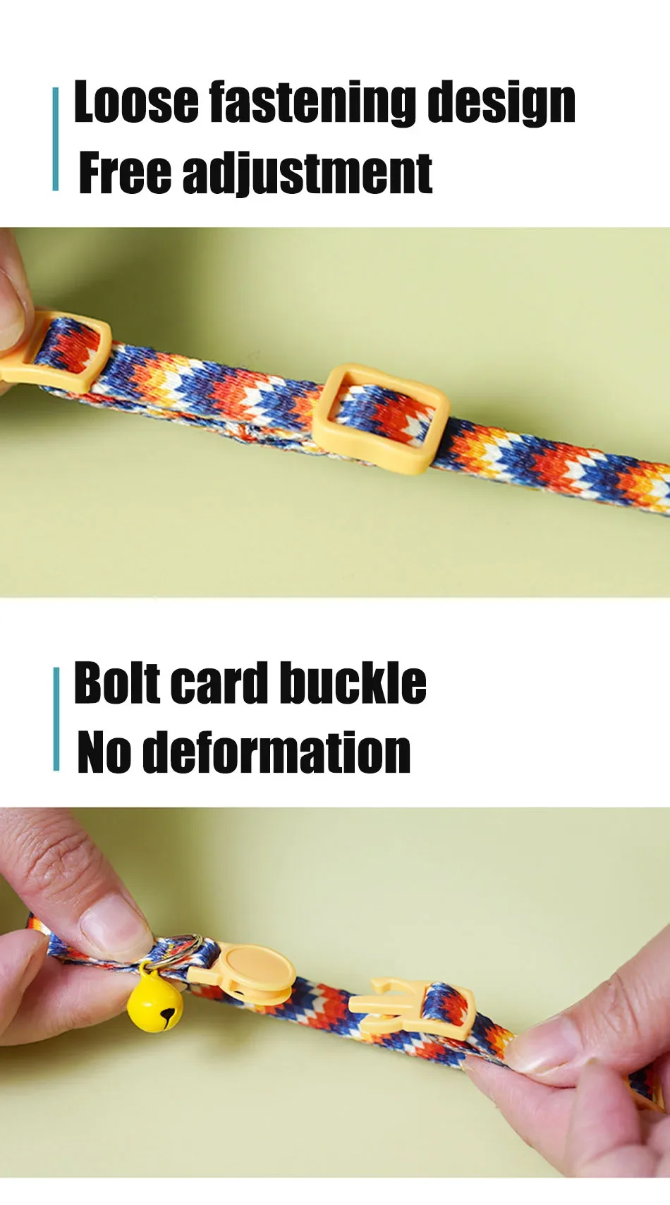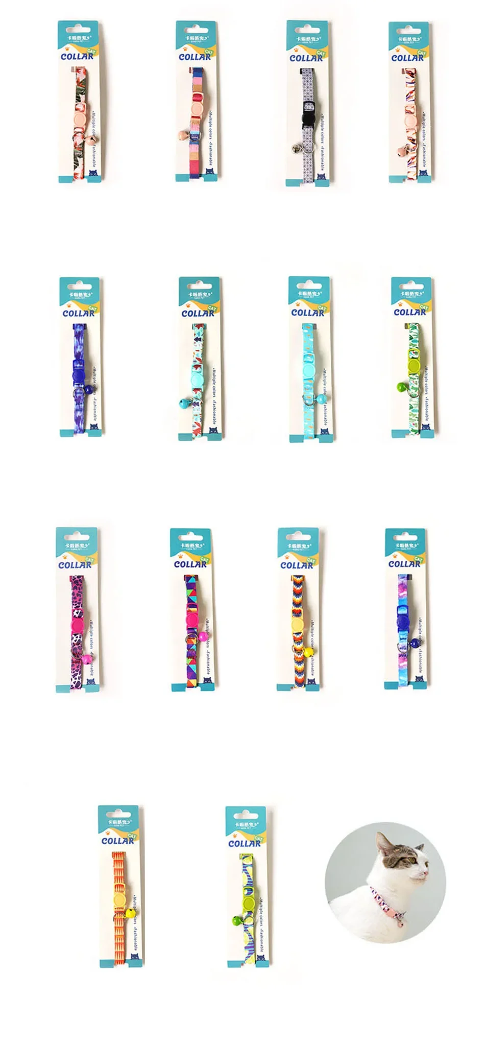 Cat Collar Colorful Cute Buckle Adjustable Kitten Collar Bell Positioning Footprint Dog Necklace Bell New-Year-Present Chihuahua