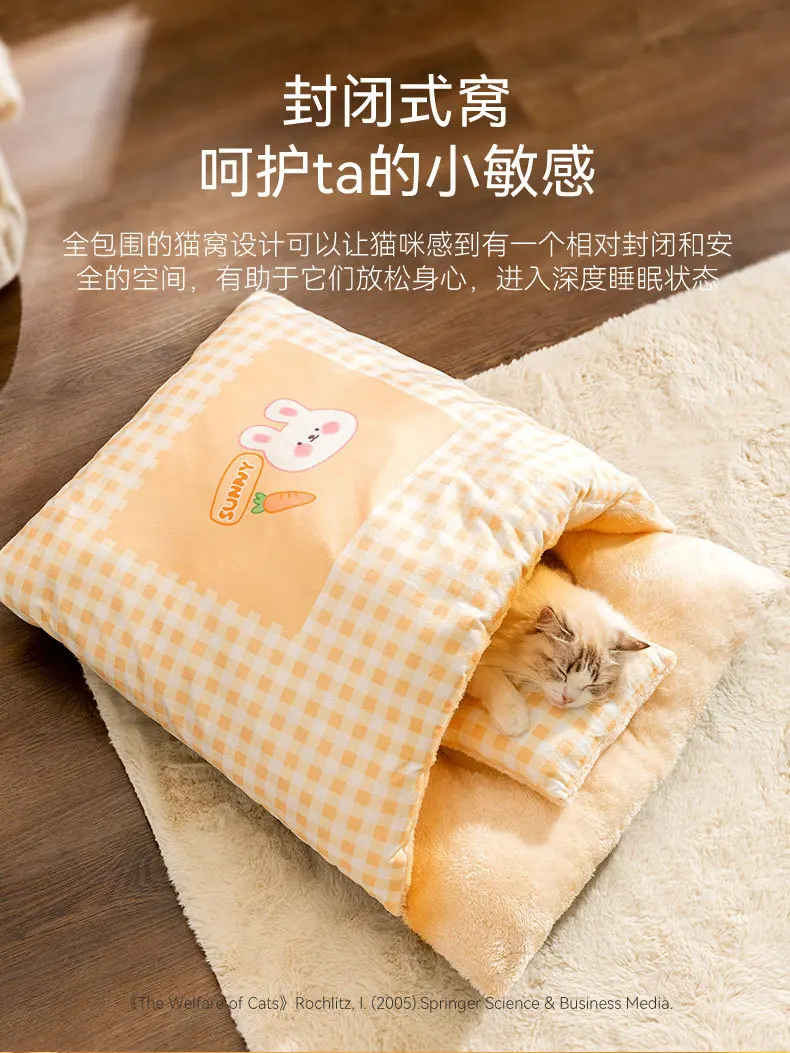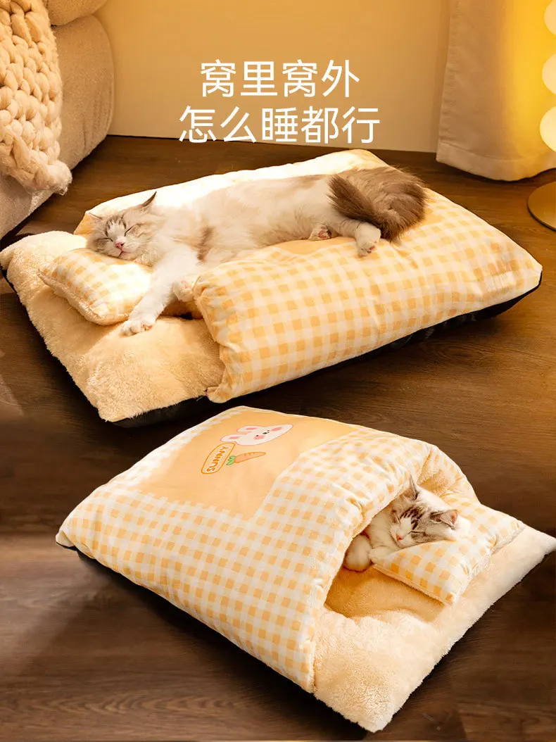 Cat /Dog Bed Foldable Pet Sleepping Removable Washable Kennel House Indoor Nest Soft Deep Sleep with Cushion Kittens Puppies