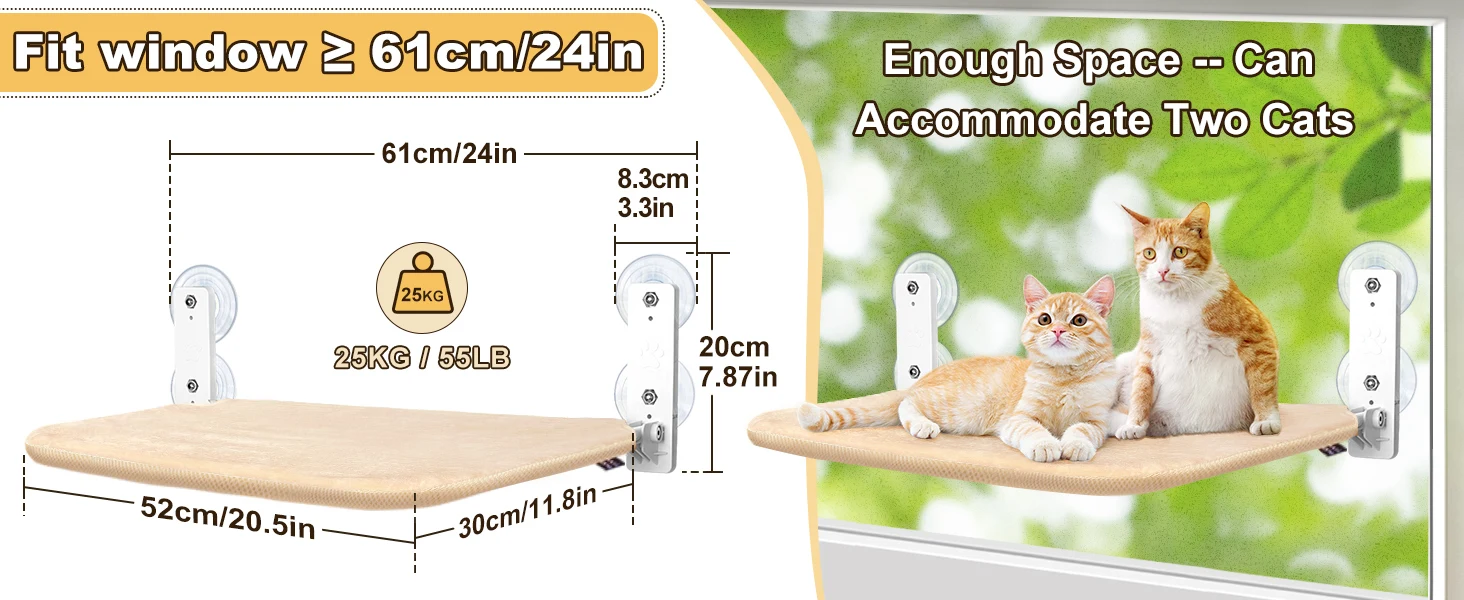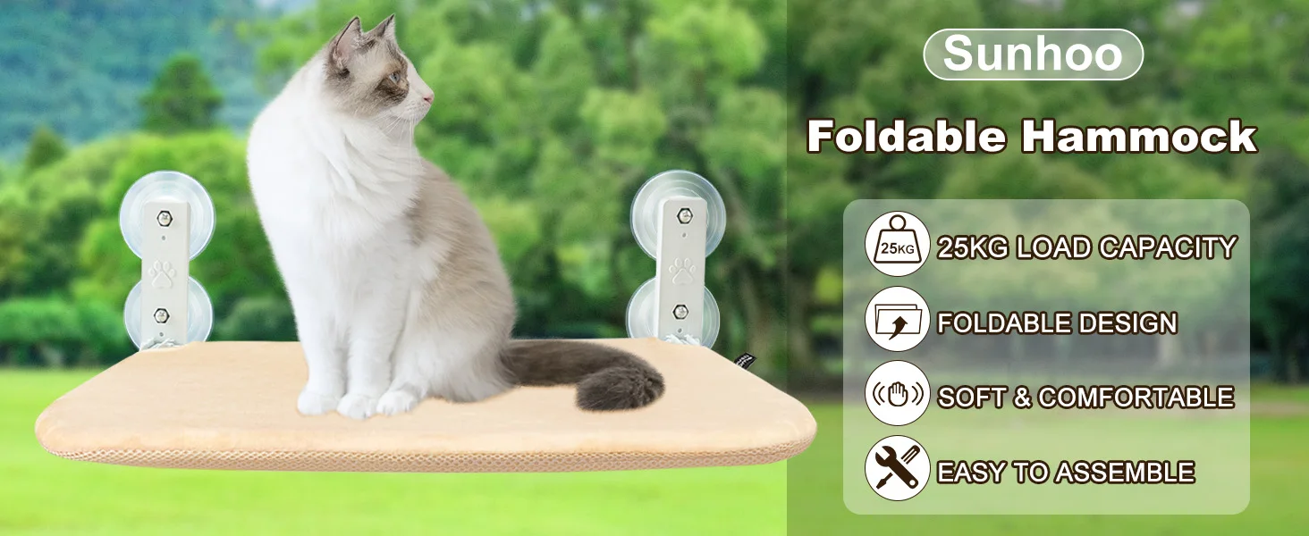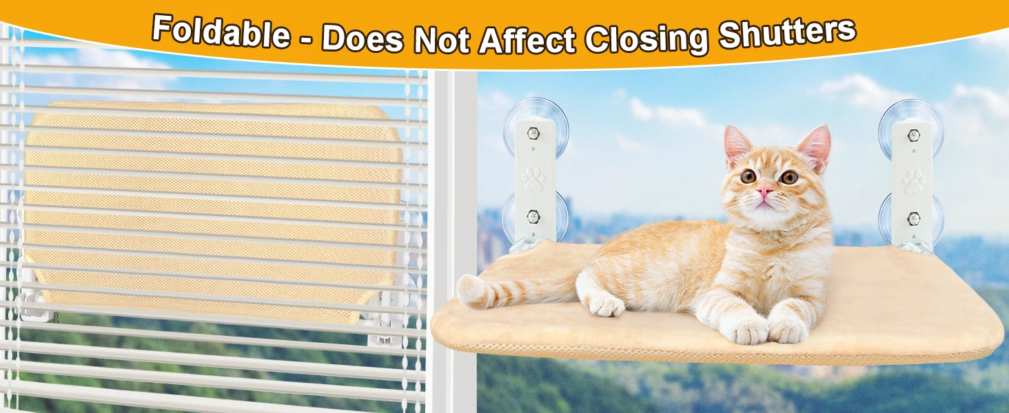 Cat Window Perch Cordless Cat Window Hammock Foldable with 4 Suction Cups Solid Frame Breathable Mesh Cat Window Seat Cat Beds