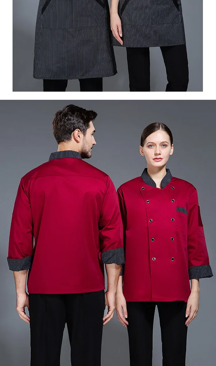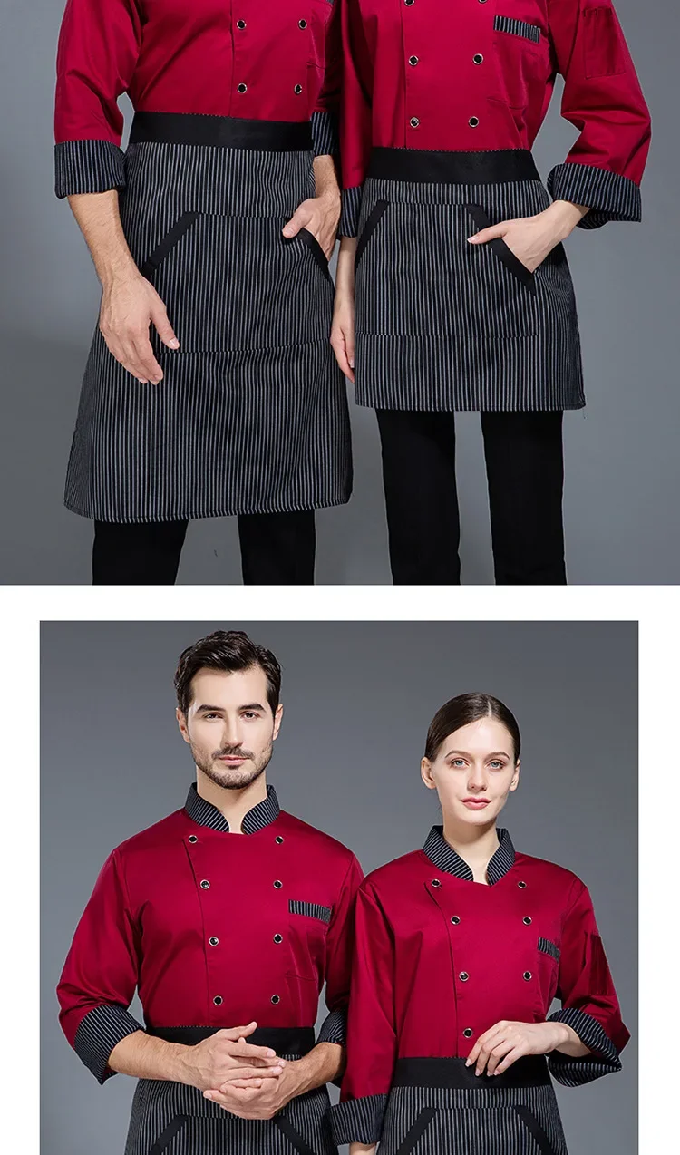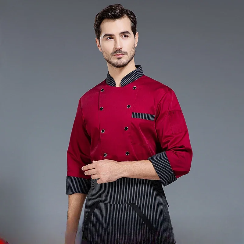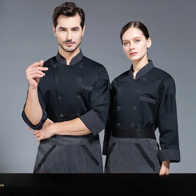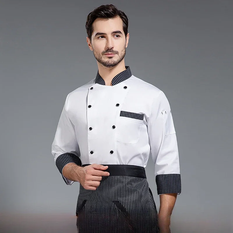 Catering Kitchen Baking Restaurant Chef Overalls Printed Logo Short-sleeved Chef Uniform Men’s Long-sleeved Hotel Kitchen