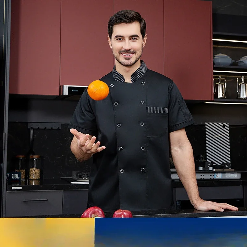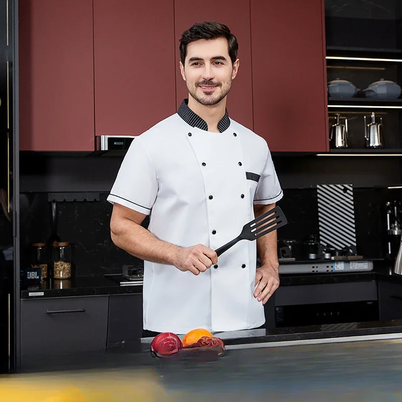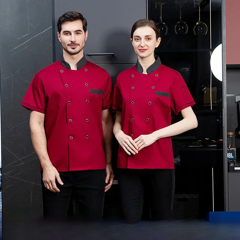 Chef Uniform Short Sleeve Restaurant Chef Kitchen Work Uniforms Solid Stand Collar Single-Breasted Catering Service Uniforms