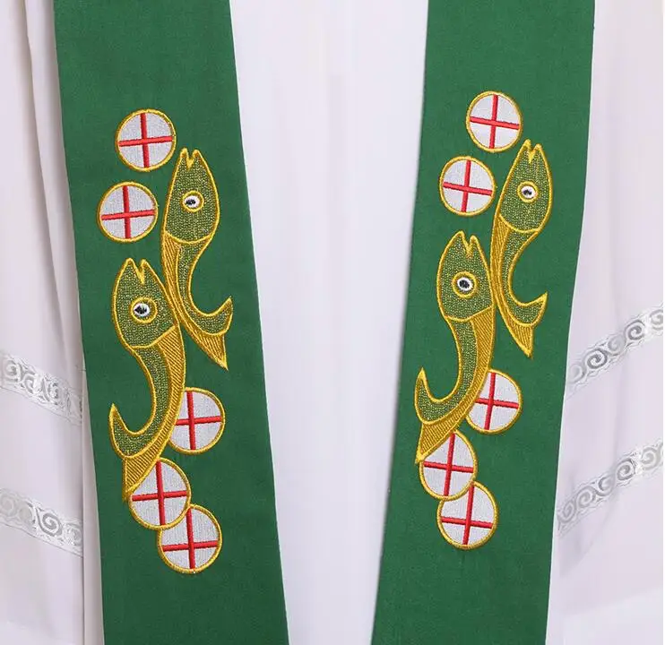 Catholicism Tie Embroidery Fish Green Priest Scarf Men Christianity