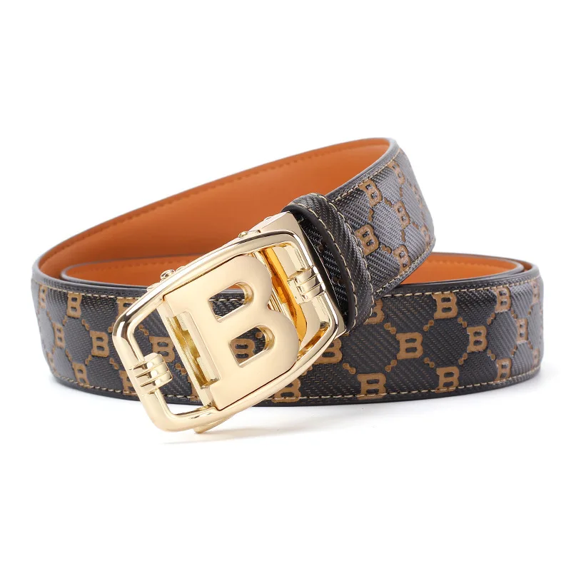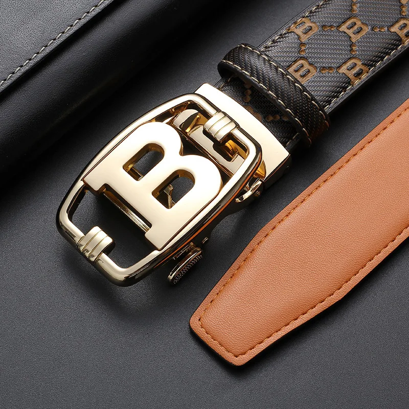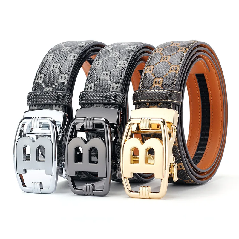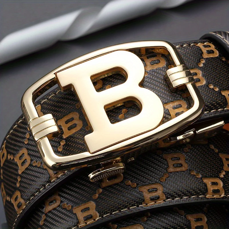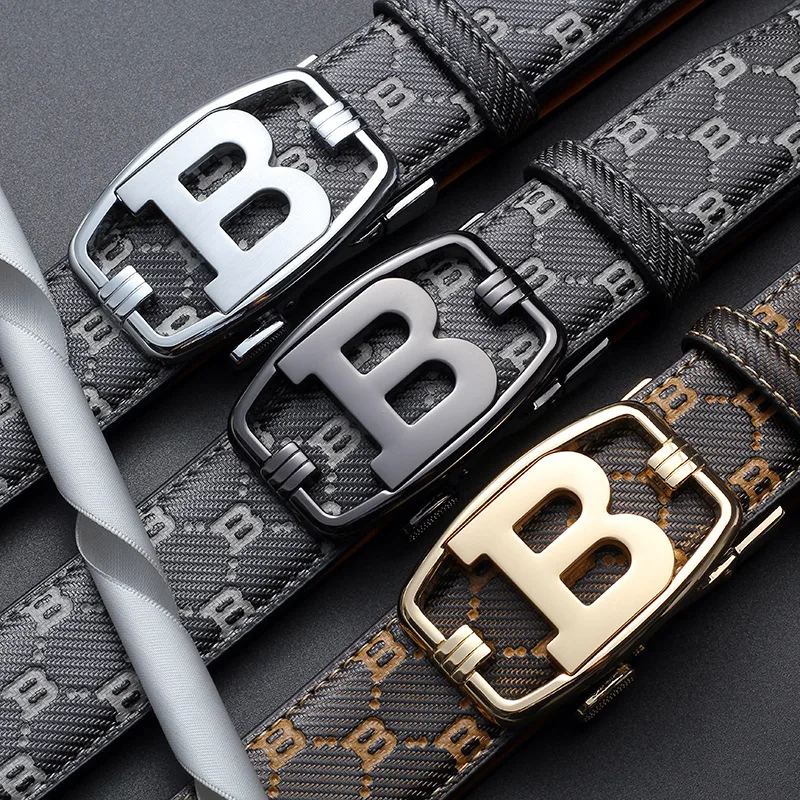Celebrity New Men’s Casual Versatile Belt Alloy B Letter Automatic Buckle Classic Luxury Style Fashion Letter Embossed Belt
