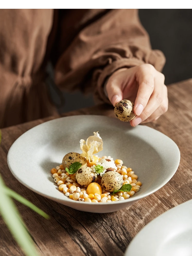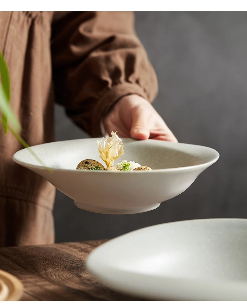 Ceramic Dinner Plate Fruit Salad Bowl Snack Dessert Tray Hotel Restaurant Shaped Tableware Ramen Pasta Soup Basin