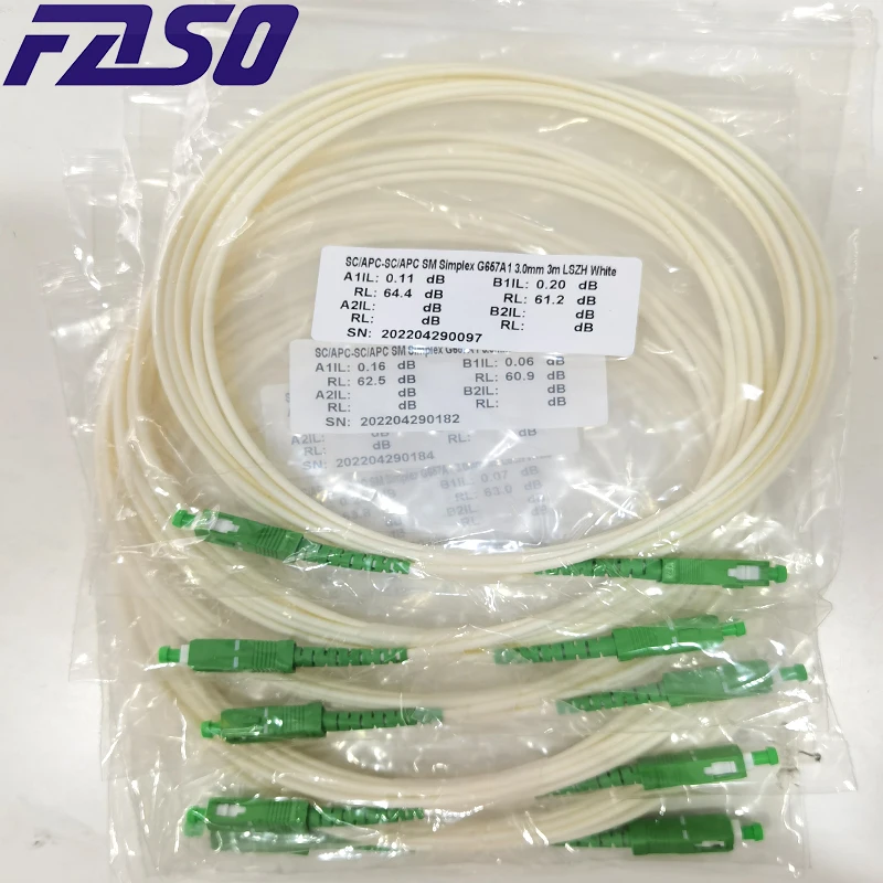 Cheap White SC/APC-SC/APC Fiber Optic Patch Cord SingleMode Fiber Optic Garter 3.0mm G652A2 LSZH 1m 2m Fiber Optic Jumper Cable
