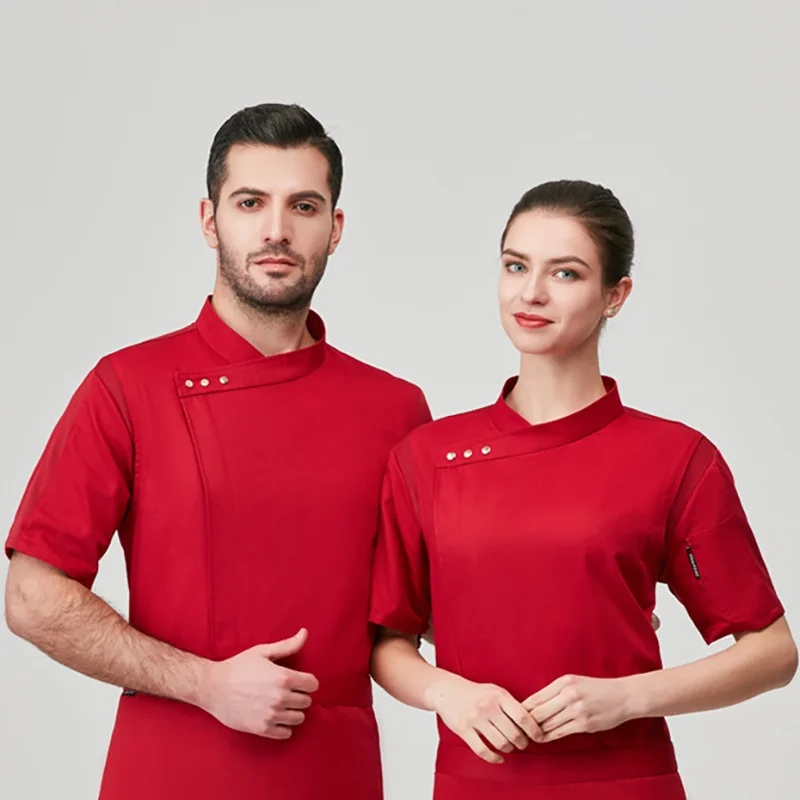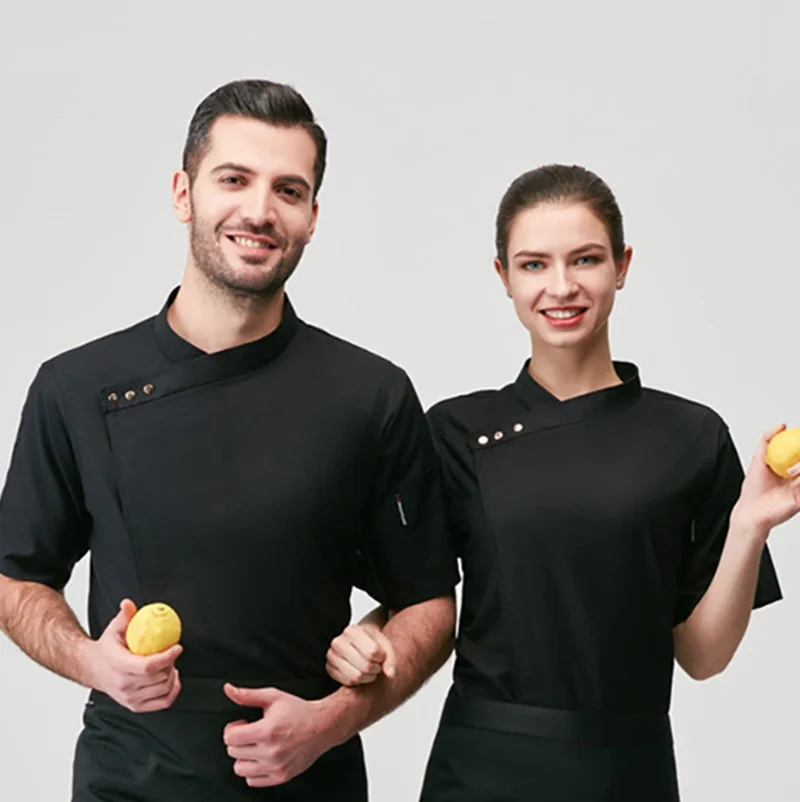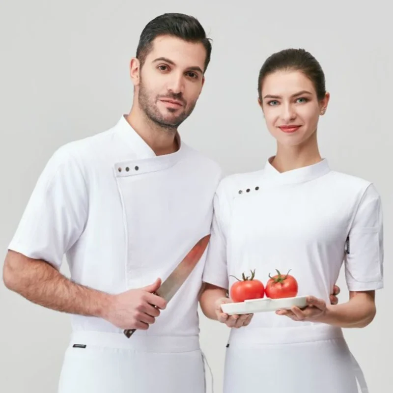 Chef Jacket Short Sleeve Men Women Restaurant Hotel Pastry Kitchen Cook Coat Baker Waiter Uniform