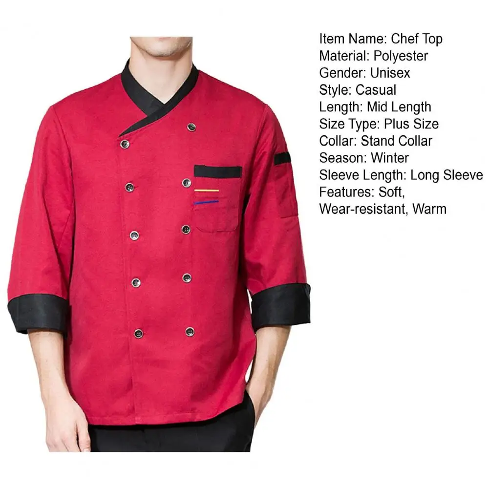 Chef Top Soft Stand Collar Long Sleeves Unisex Contrast Color Catering Pocket Plus Size Hotel Kitchen Cooking Uniform for Hotel