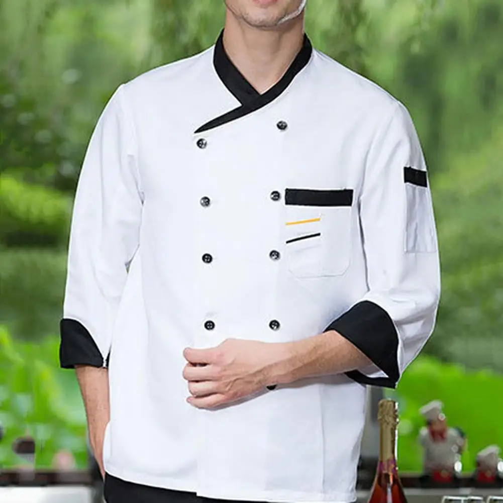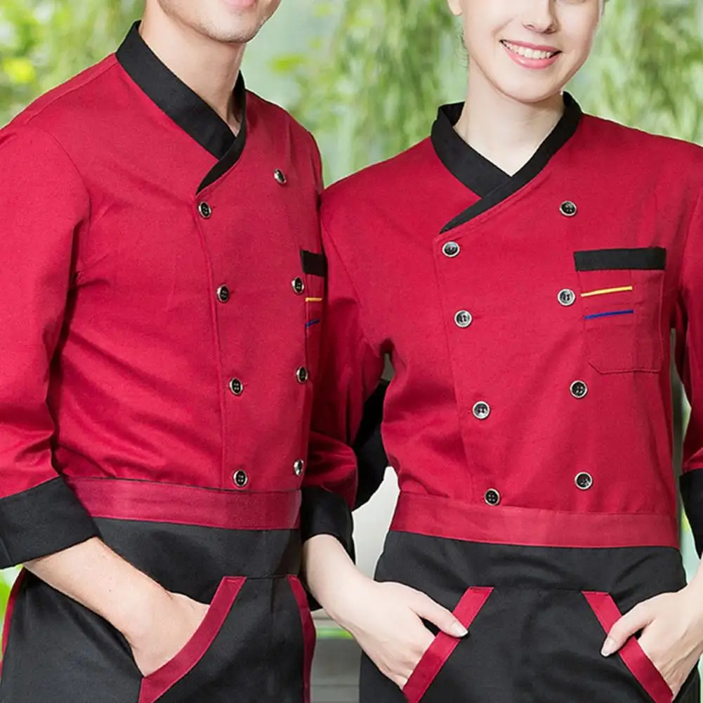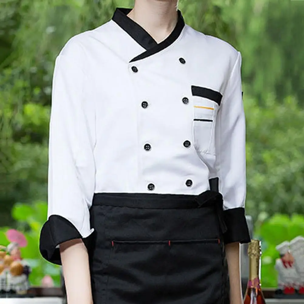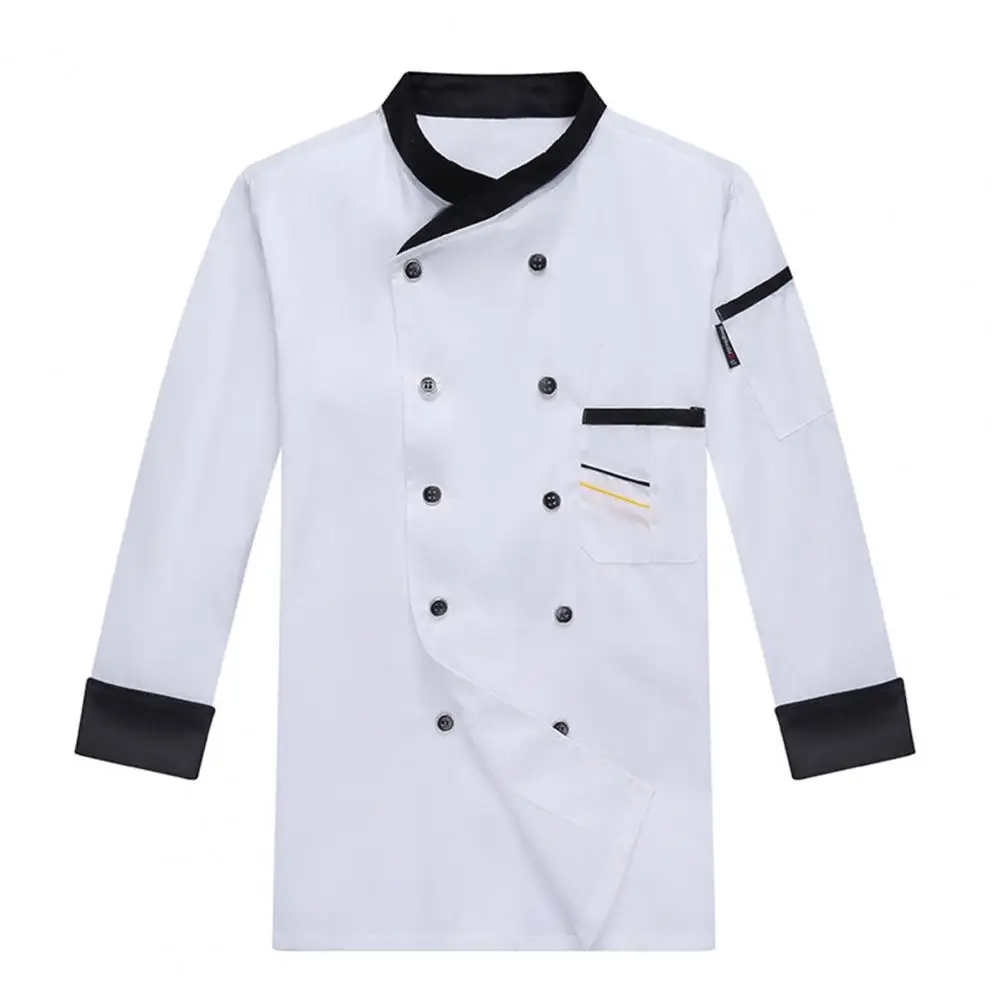 Chef Top Soft Stand Collar Long Sleeves Unisex Contrast Color Catering Pocket Hotel Kitchen Cooking Uniform for Hotel