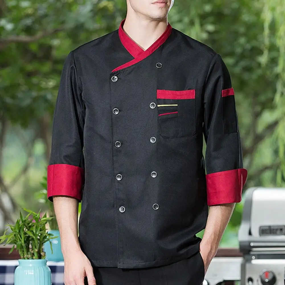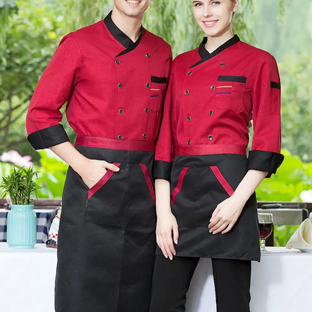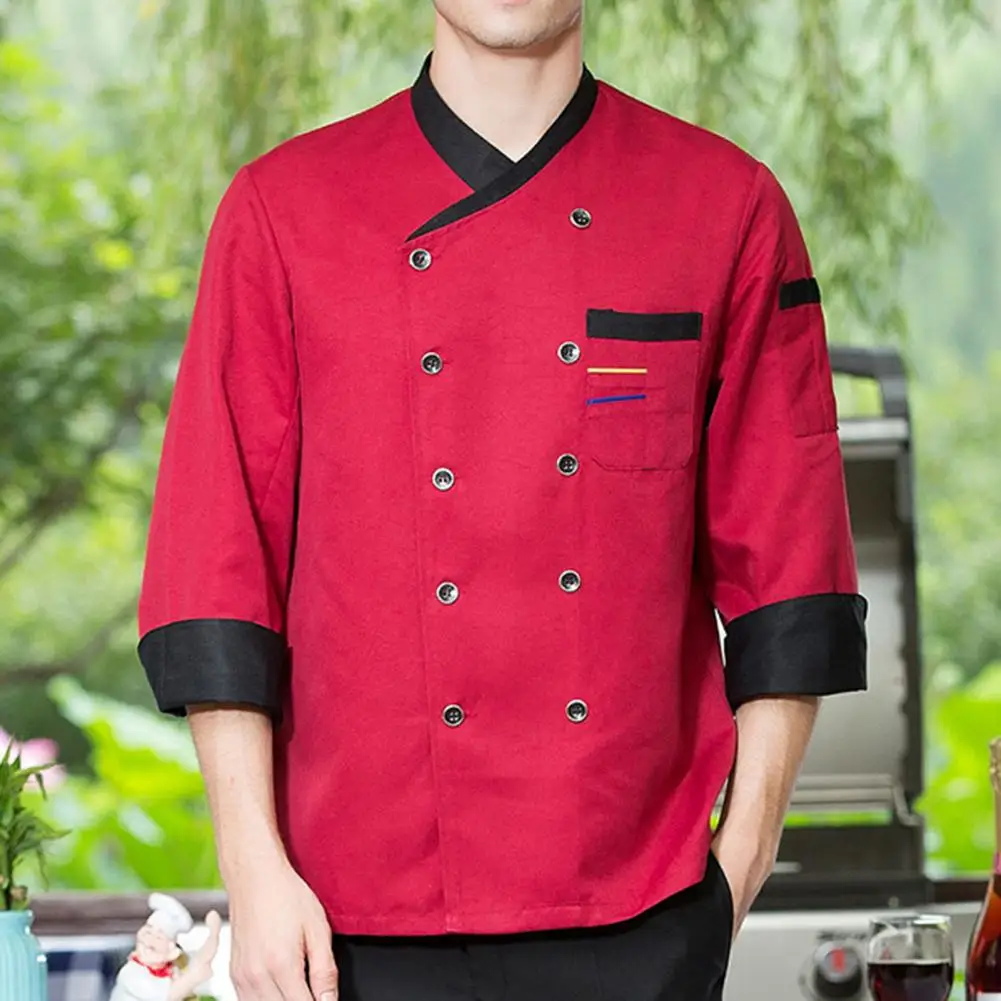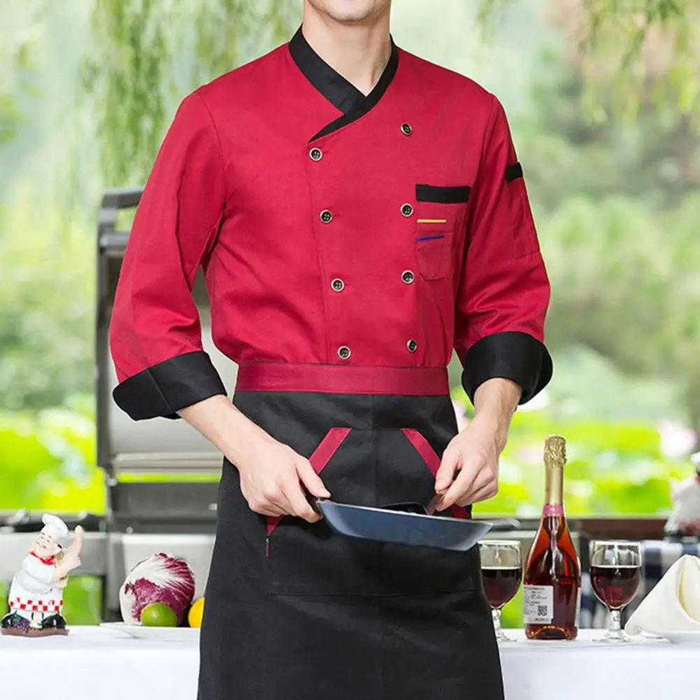Chef Top Soft Stand Collar Long Sleeves Unisex Contrast Color Catering Pocket Hotel Kitchen Cooking Uniform for Hotel