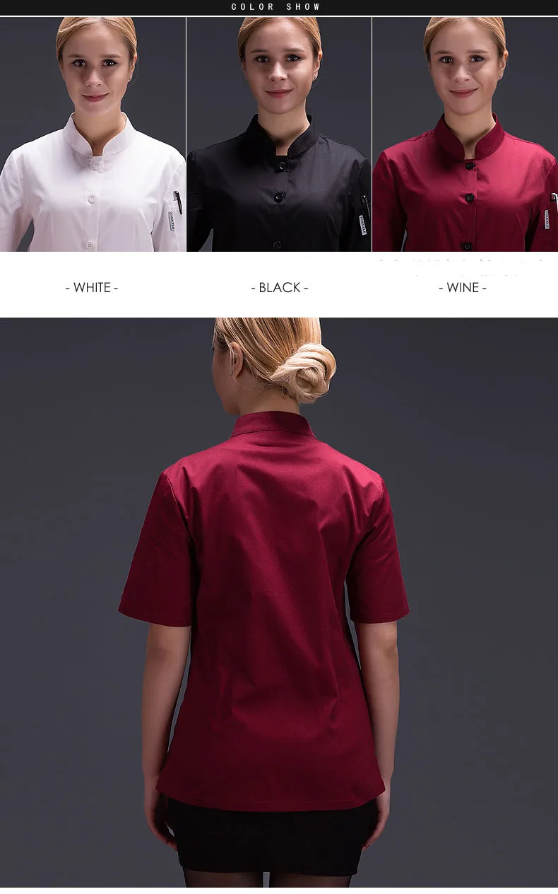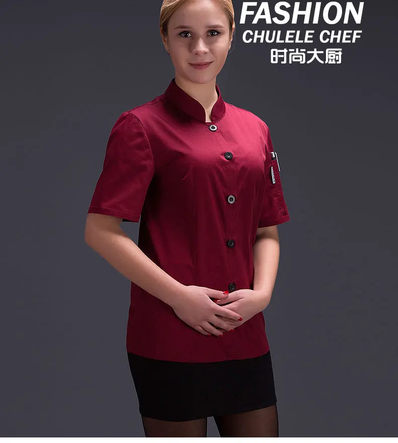 chef uniform for women summer restaurant cook workwear white shirt Hotel Red chef jaket Catering service chef clothes