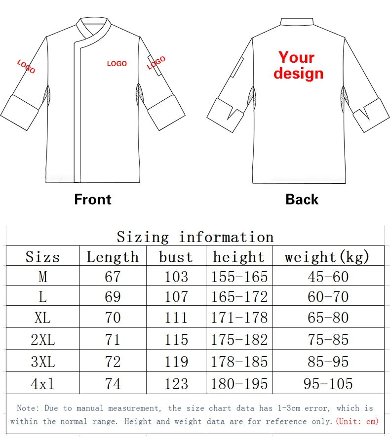 Chef Uniform Men Jacket Cooking Clothes Kitchen Shirt Waitress Food Service Hotel Fast Food Hot Pot Cake Shop Coat Custom Logo