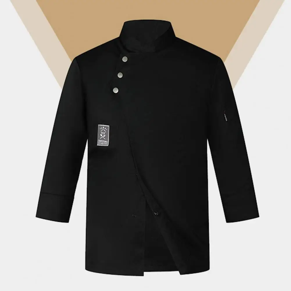 Chef Uniform Stand Collar Double-breasted Long Sleeve Unisex Soft Breathable Thin Stain-resistant Cook Shirt Bakery Coffee House Diner Kitchen Work Clothes