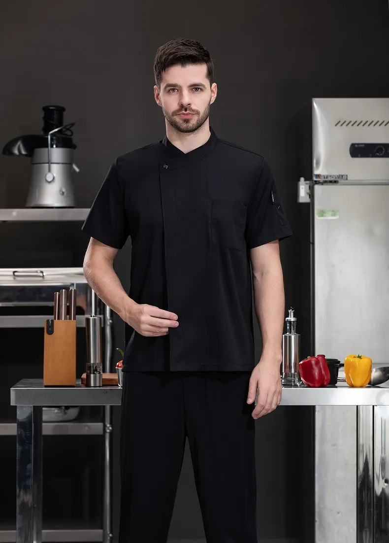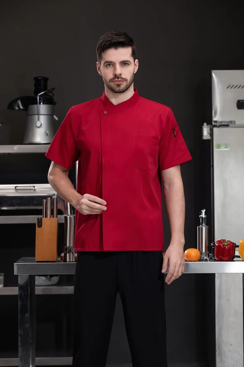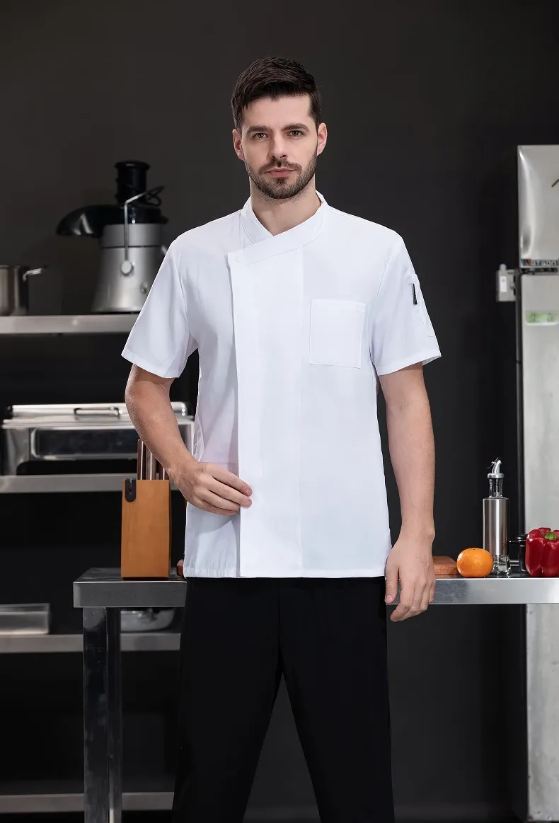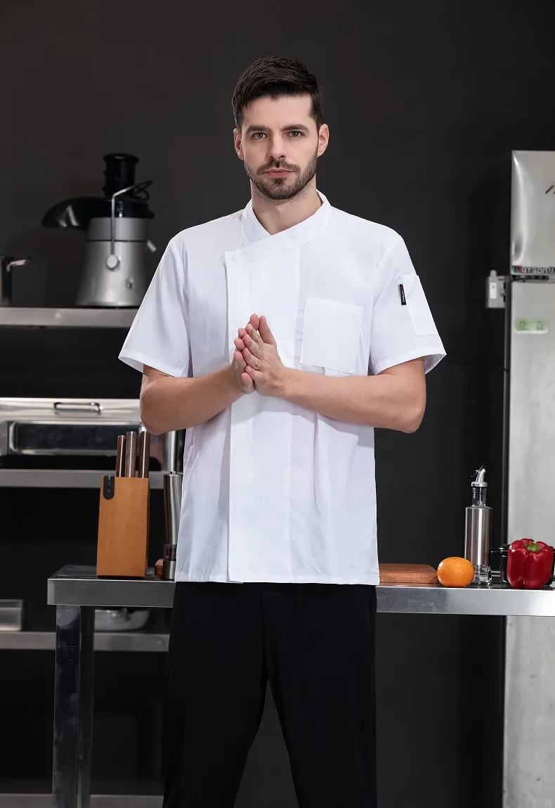 Summer Kitchen Clothes Hotel Men's Chef Jacket Breathable Restaurant Chef's Uniform Bakery Bake Cafe Waiter Work Shirt