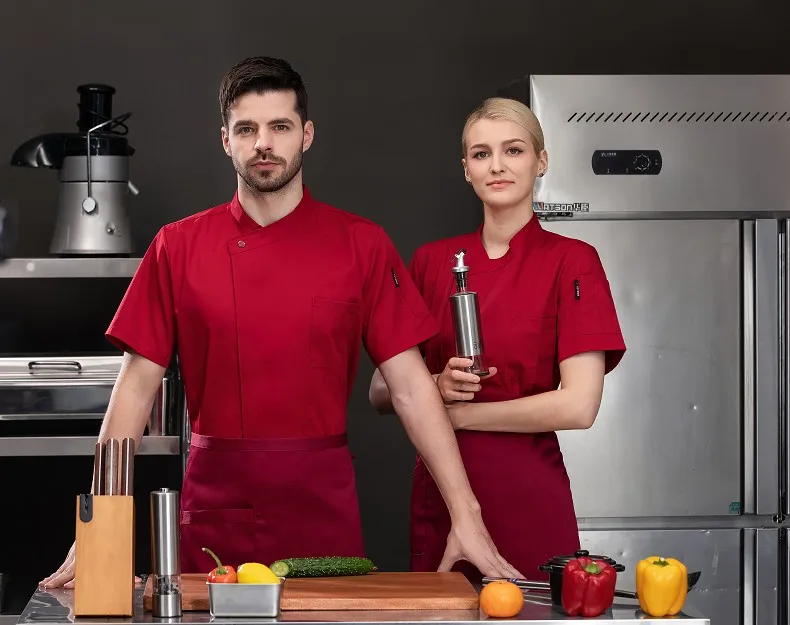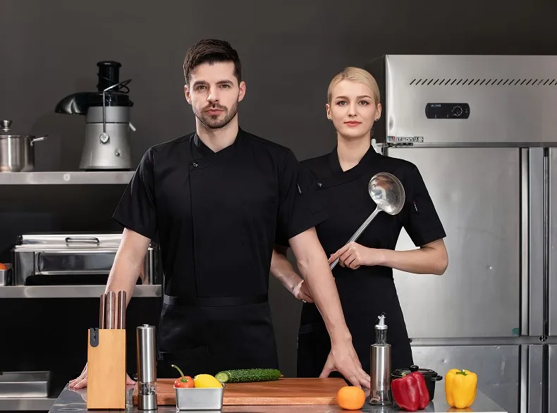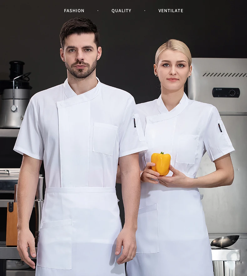 Chef Uniform Waiter Clothes Cook T-shirt Male/female Summer Work Clothes Food Service Kitchen Jacket Resturant Hotel Cook Coat