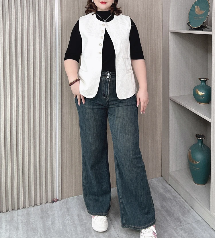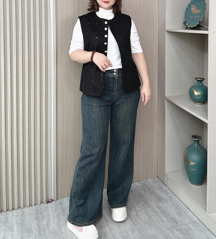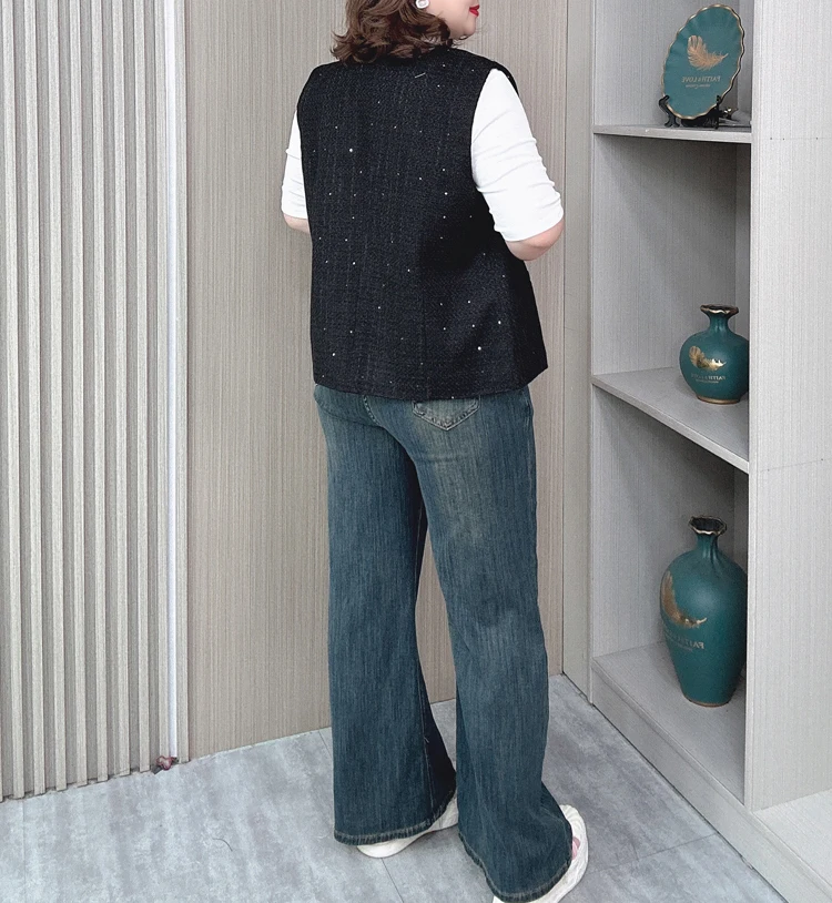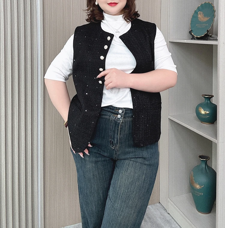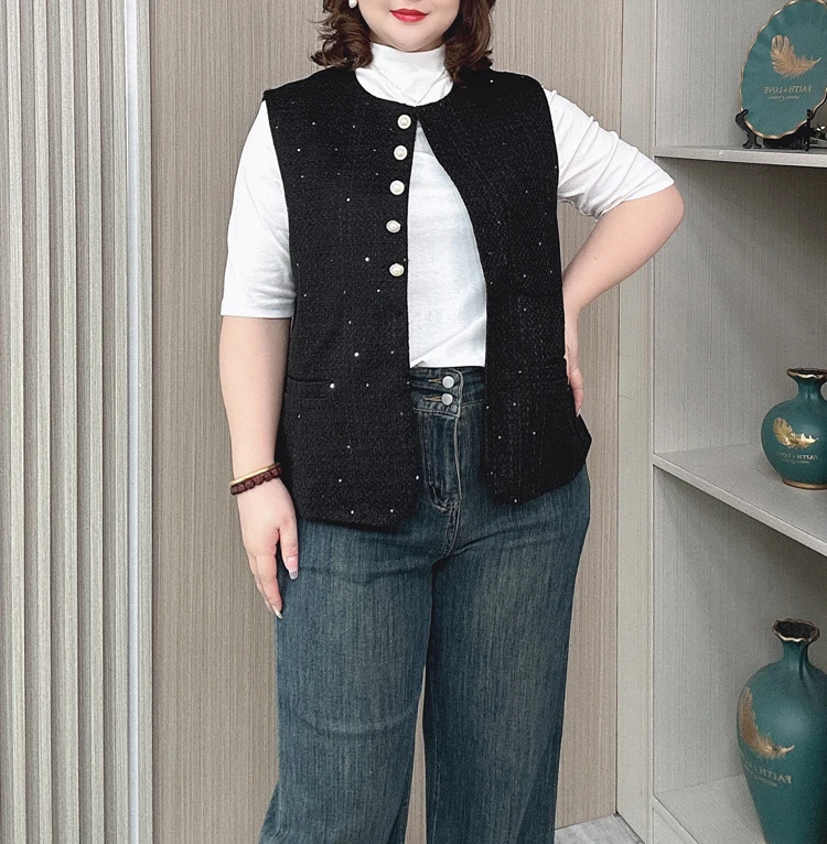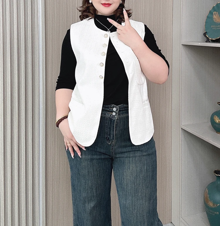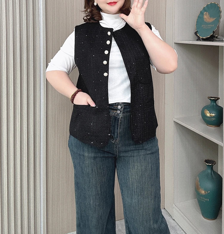 Chic Waistcoat Female Spring/Fall New Plus Size Women Round Neck Loose Thin Tweed Outside Vest Sleeveless Jacket 2421