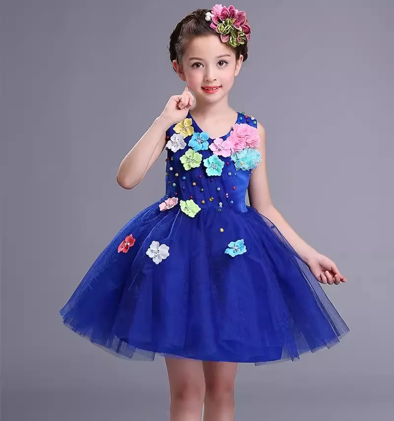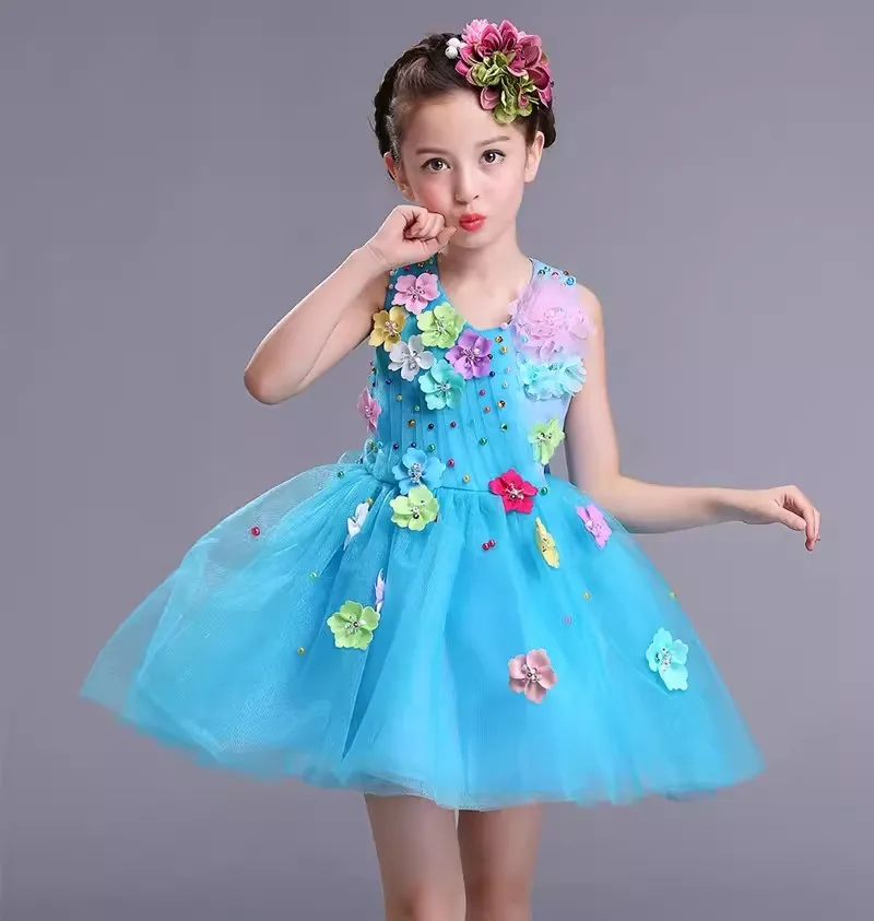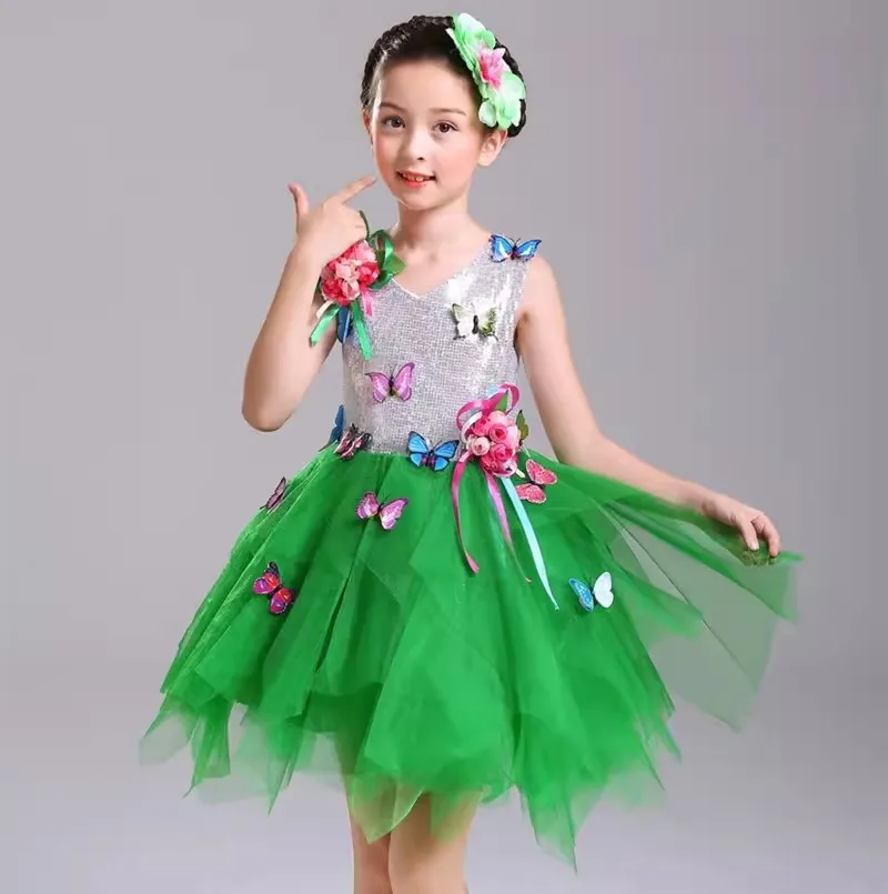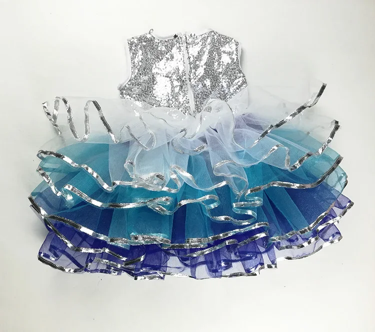 Children Ballroom Clothing Sequined Modern Dance Tutu Dress Girls Jazz Dance Costume Stage Wear Kids Cute Wedding Princess Dress