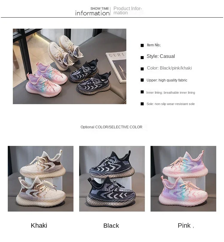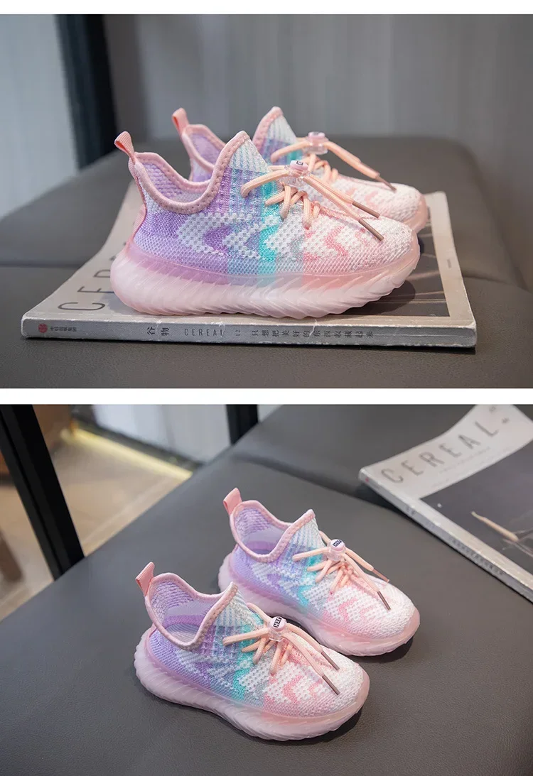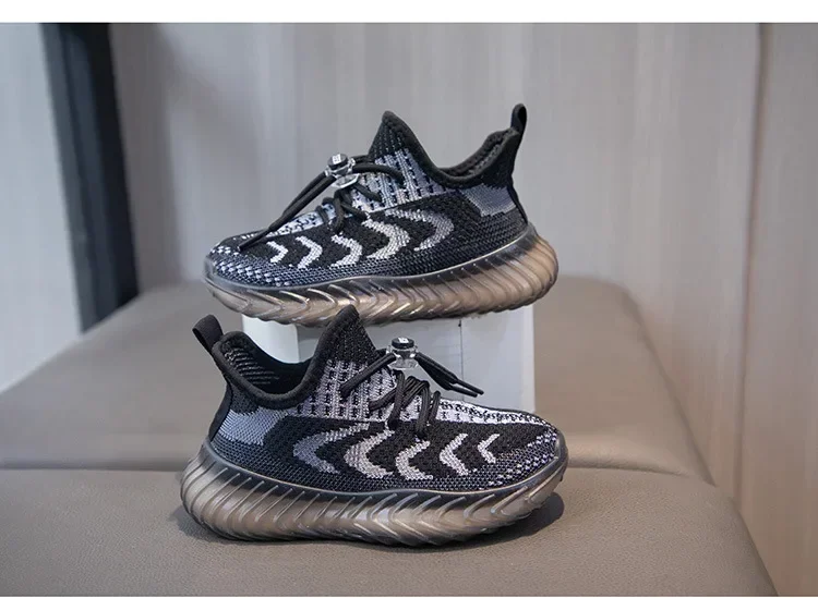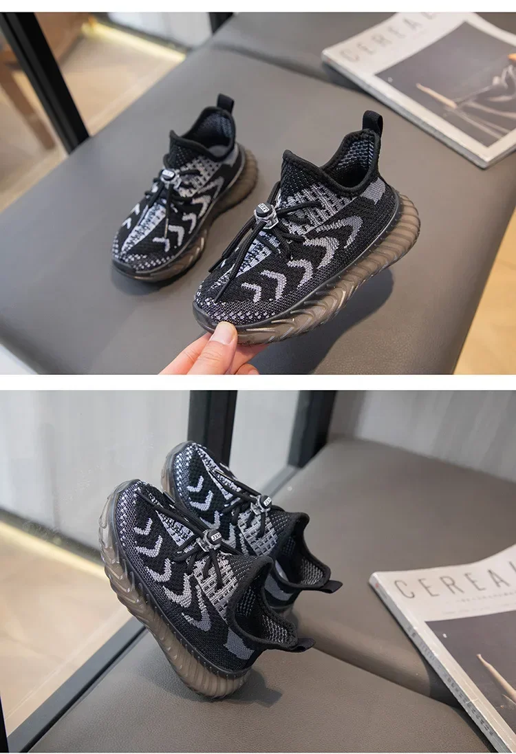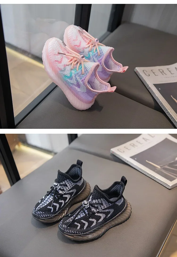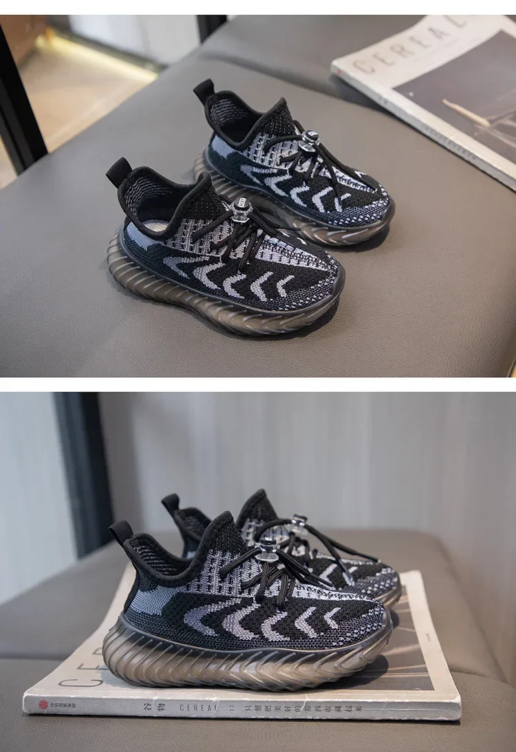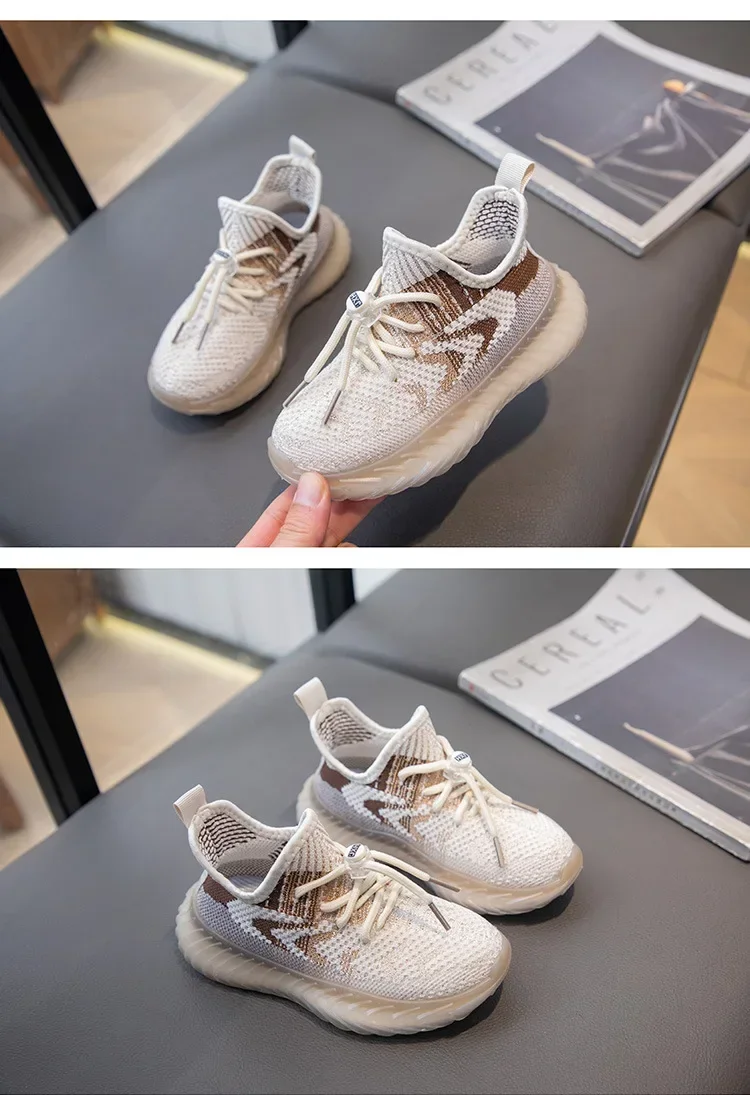 Children Breathable Sneakers Kids Lightweight Lace Up Elastic Slip on Sports Shoes Soft Bottom Anti Slip Running Mesh Shoes