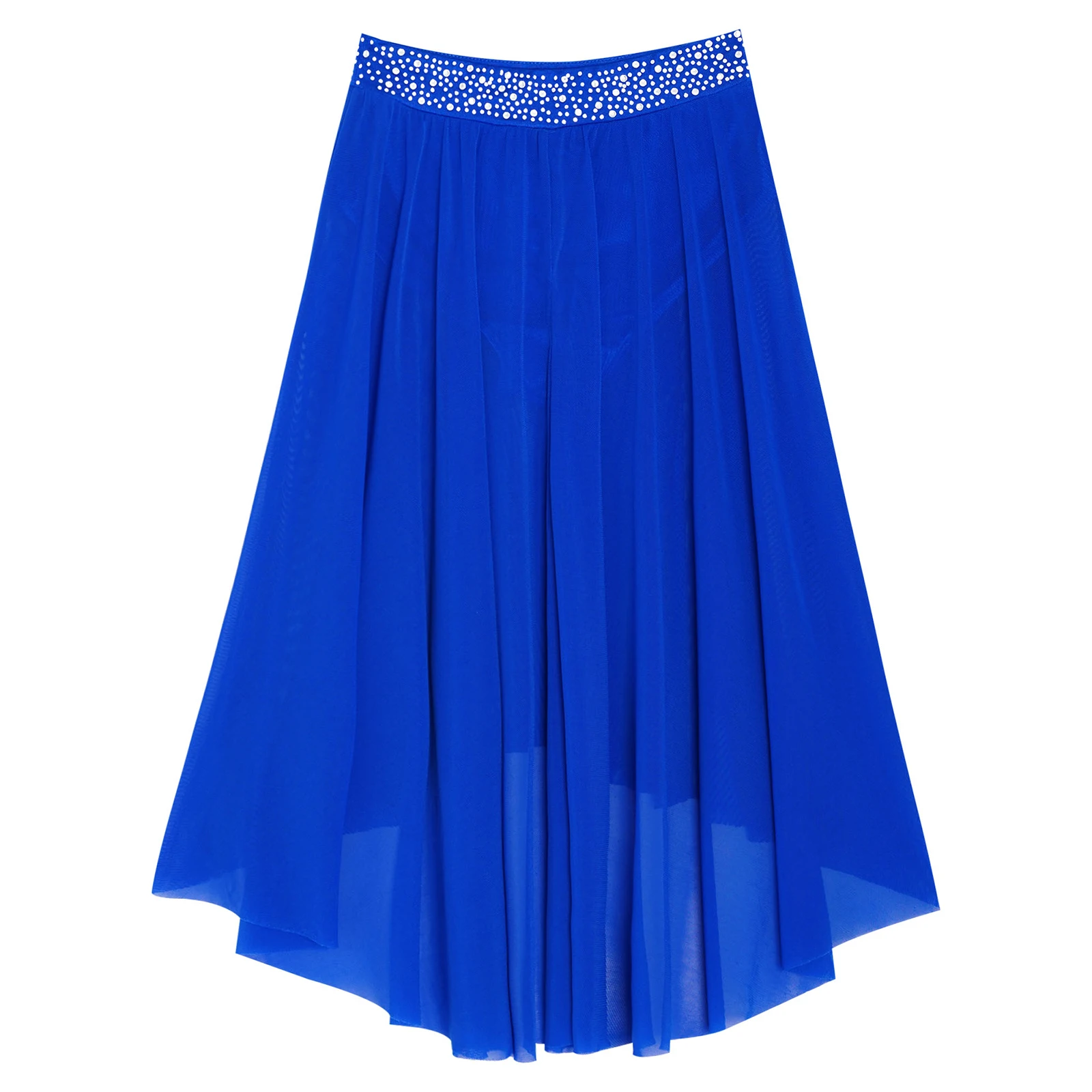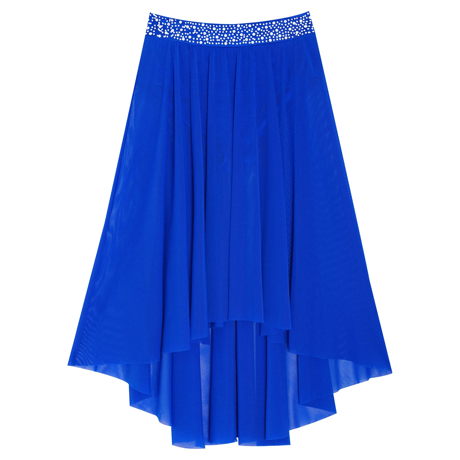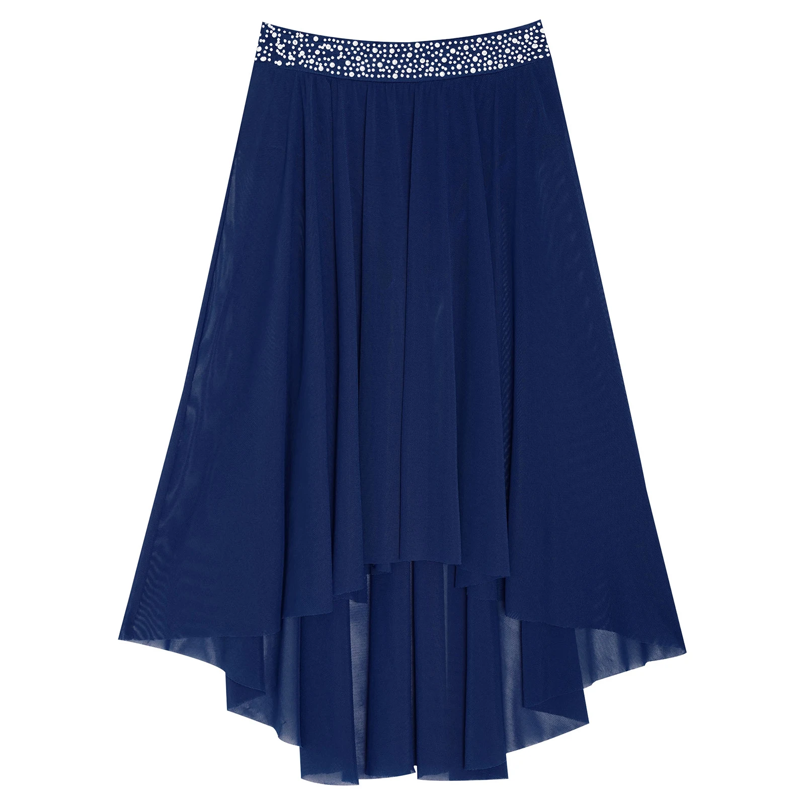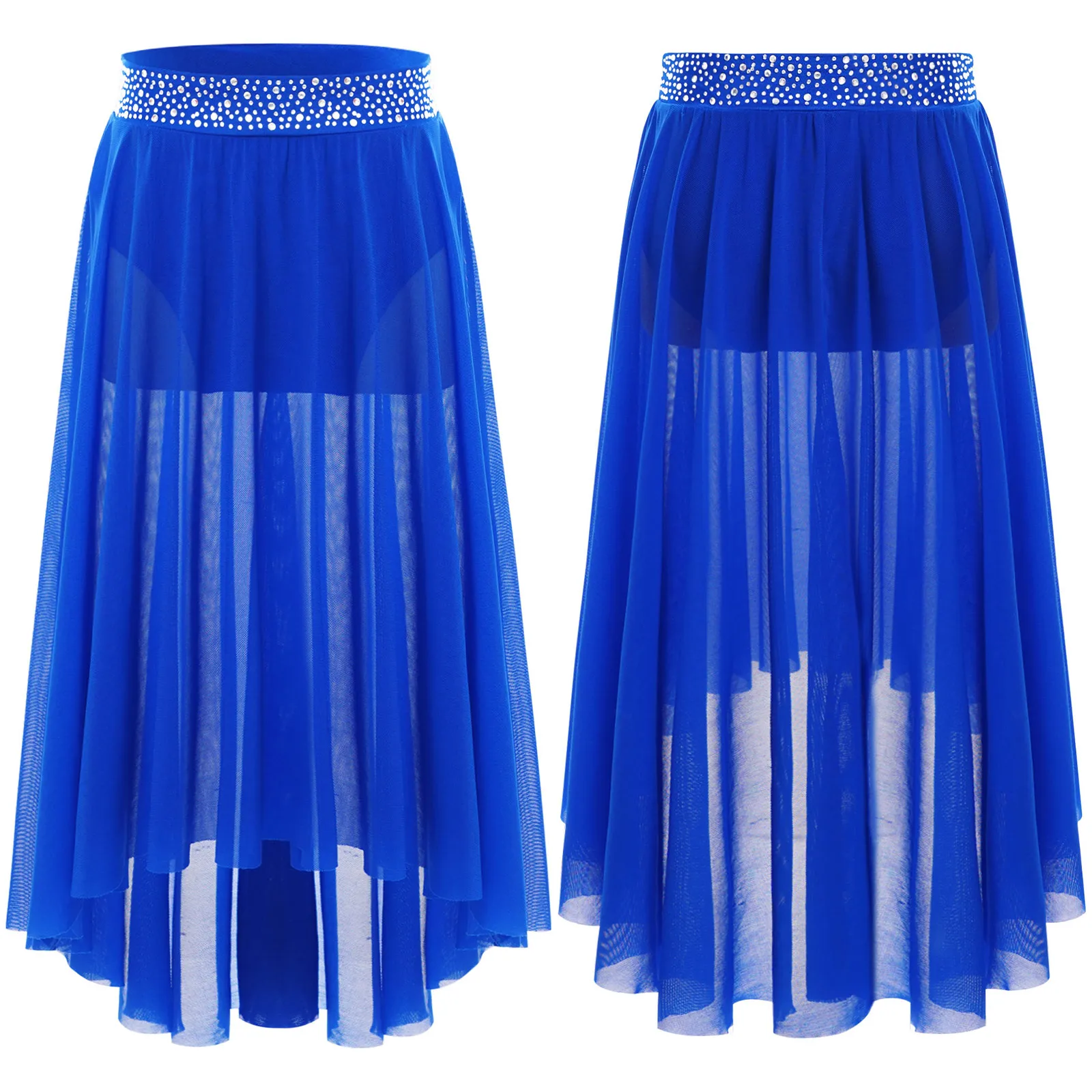 High-low irregular mesh skirt with side slit and flowy design shows the softness and beauty of dance.