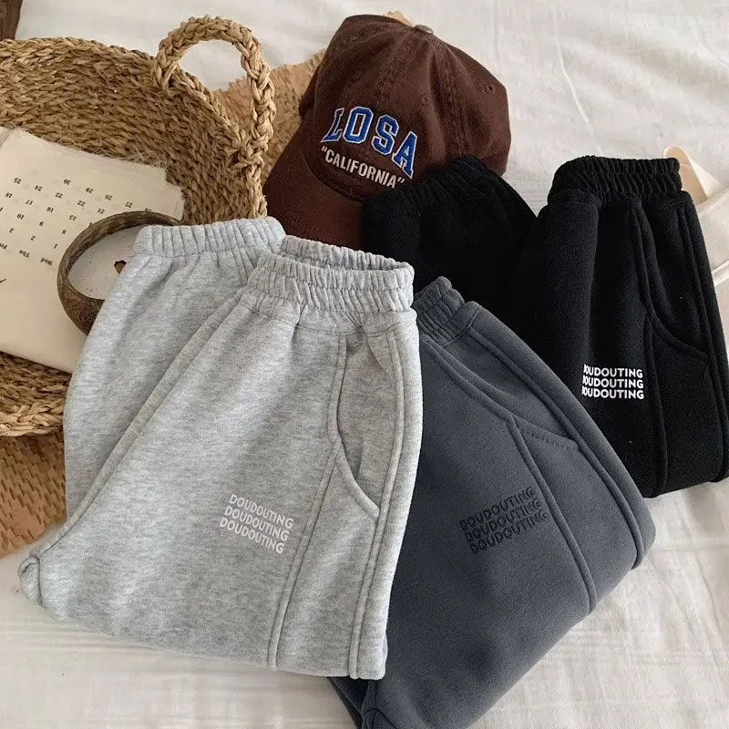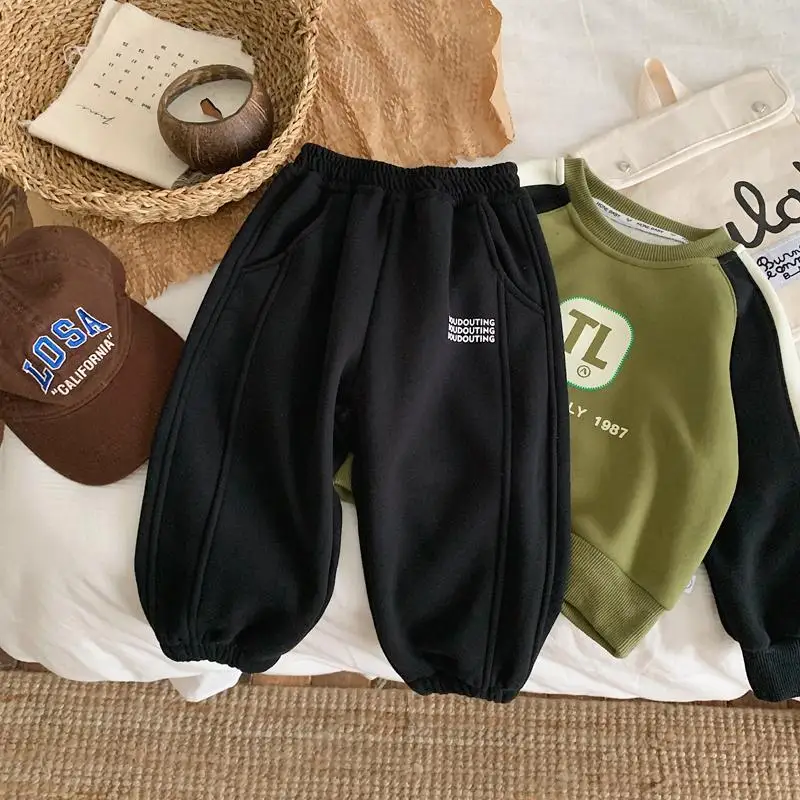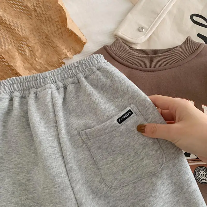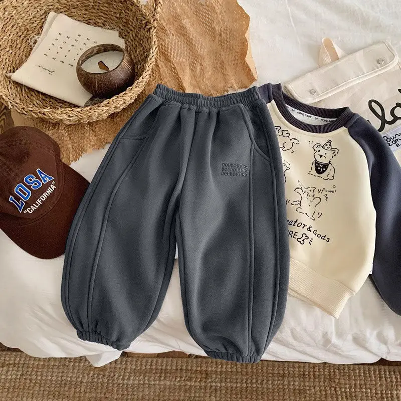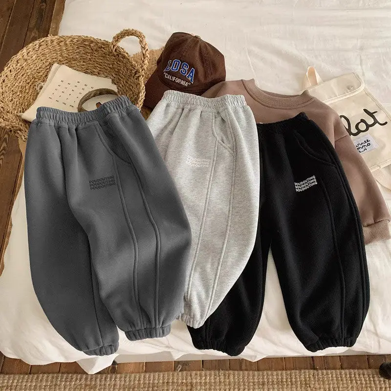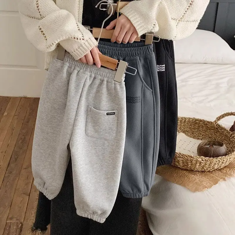 Children Thick Pants Autumn Winter Trouser Kids Solid Color Girls Joggers Boys Casual Pants Sport School Baby Clothes 2-11 Yrs