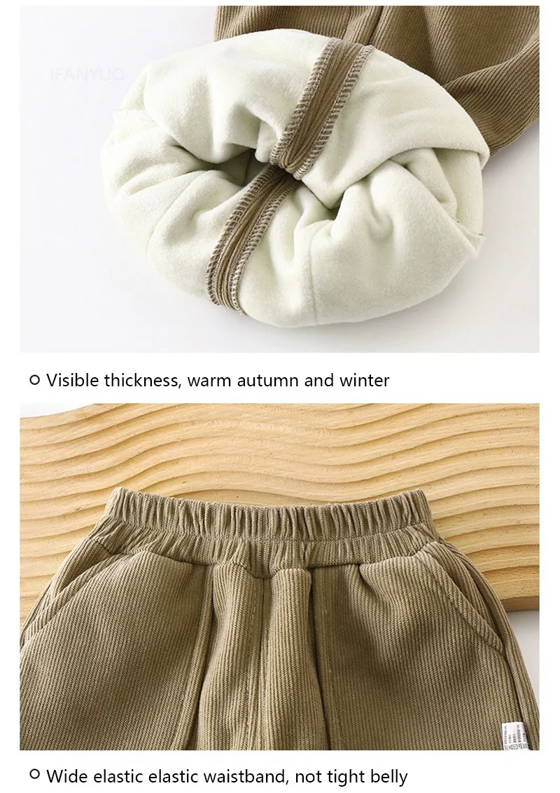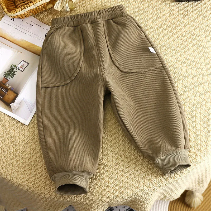 Children Velvet Pants Autumn Winter New Solid Color Boys Kids Thick Warm Sports Trousers Simple Fashion Korean Girls Baby Pants