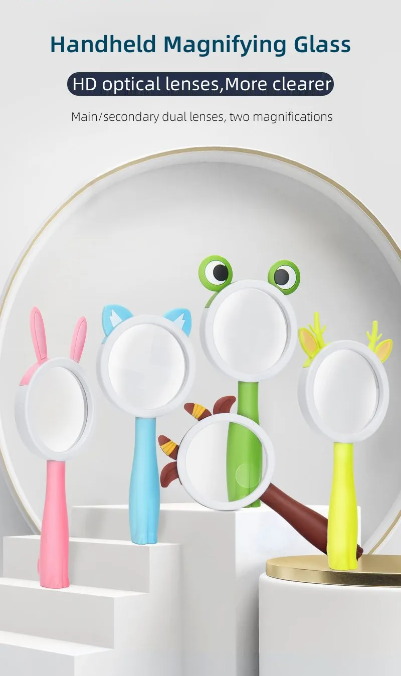 Children’s Magnifier 5x-10X Handheld Non-slip Magnifier Cute Cartoon Animal Magnifying Glass Science Education Experiment Toys