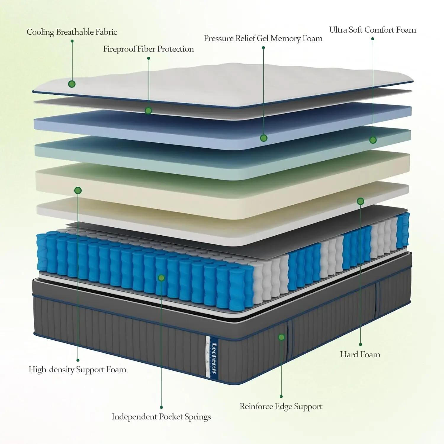- Peace of Mind Purchase: Prioritize your well-being with the Lechepus mattress. Our bed mattress meets CertiPUR-US (Foam) and Oeko-Tex Standard 100, also the Fireproof layer is entirely without fiberglass you can enjoy a safe and sound sleep with confidence. This King mattresses come with a 100-night trial and 10-year support.