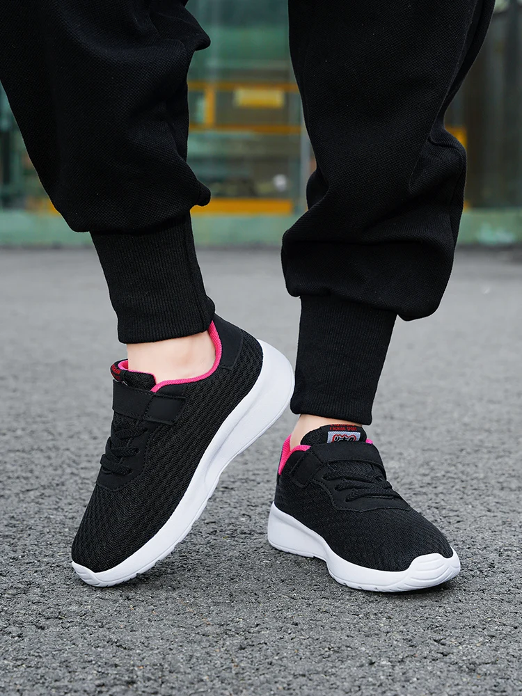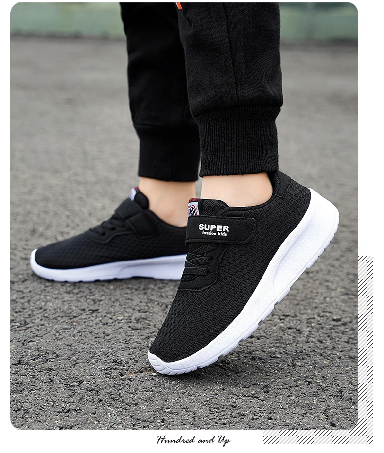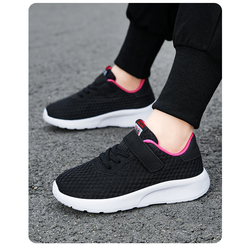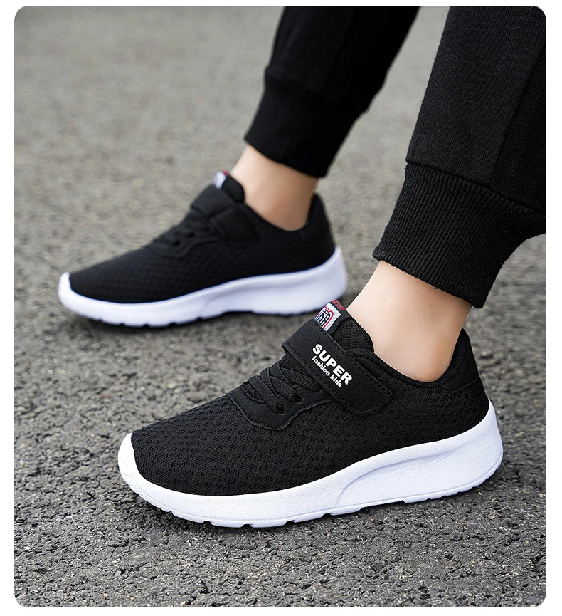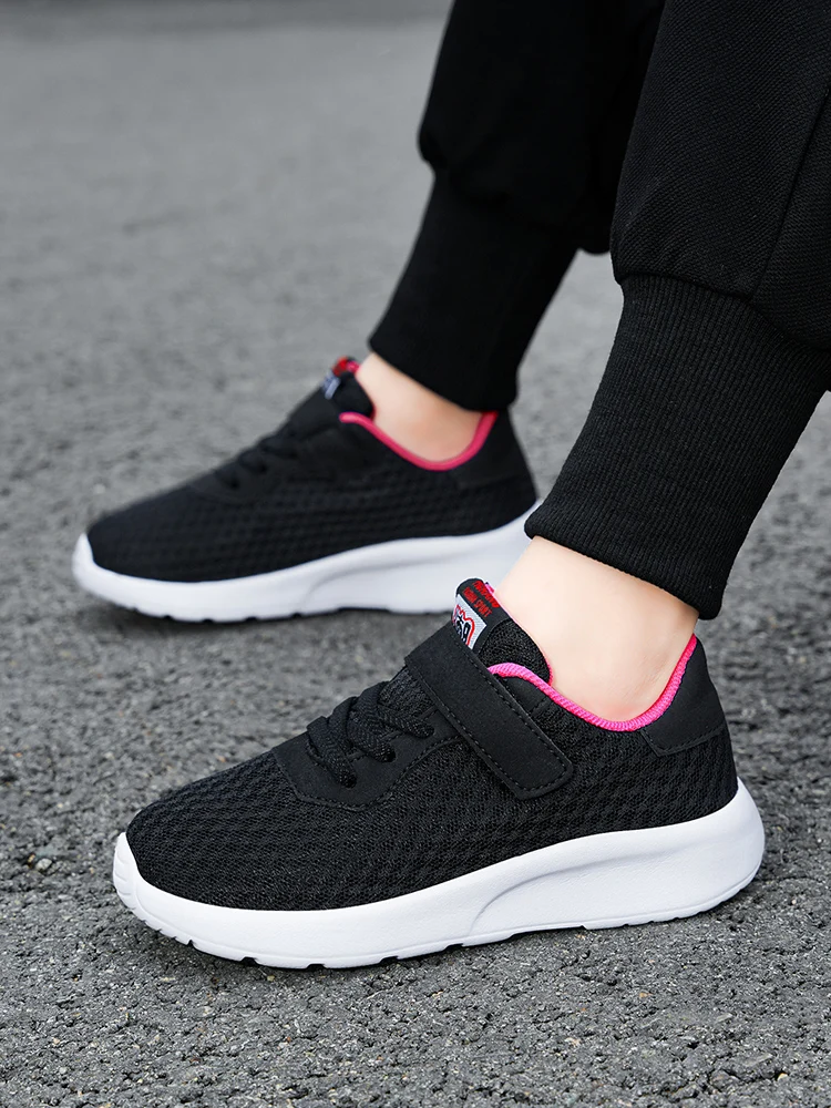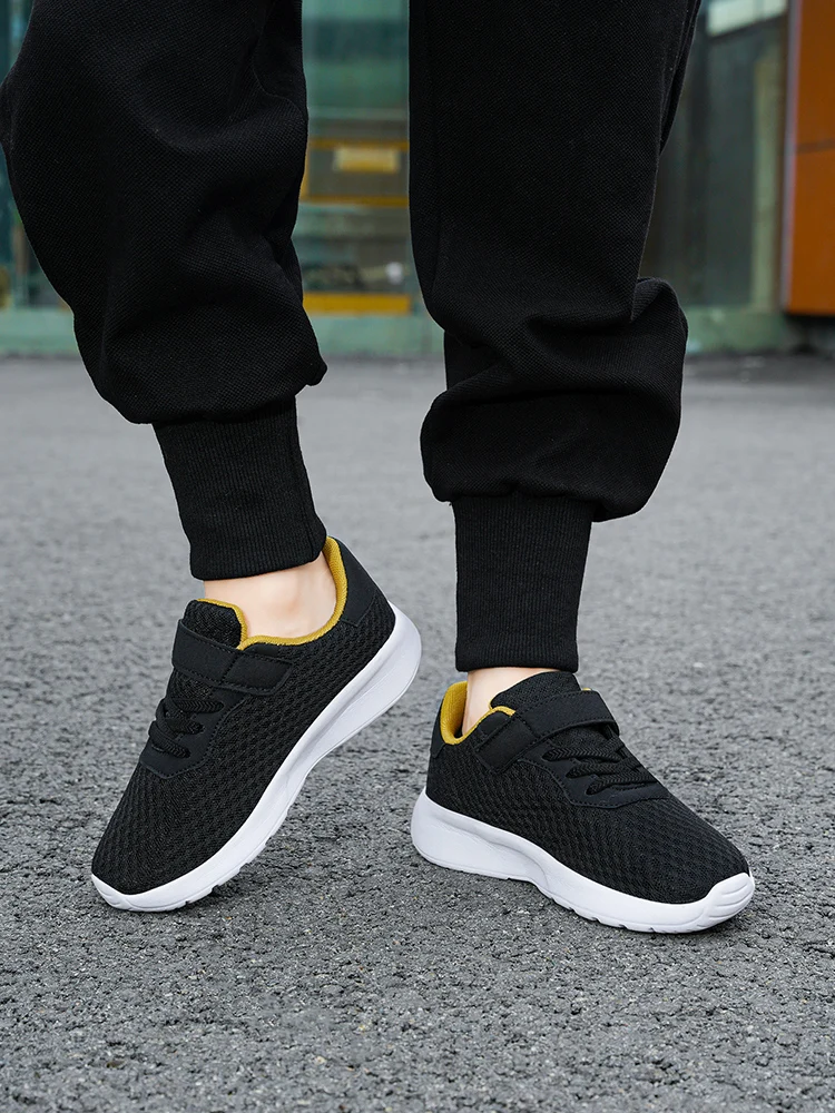 Children’s mesh breathable running shoes, boys’ black seasonal casual sports shoes