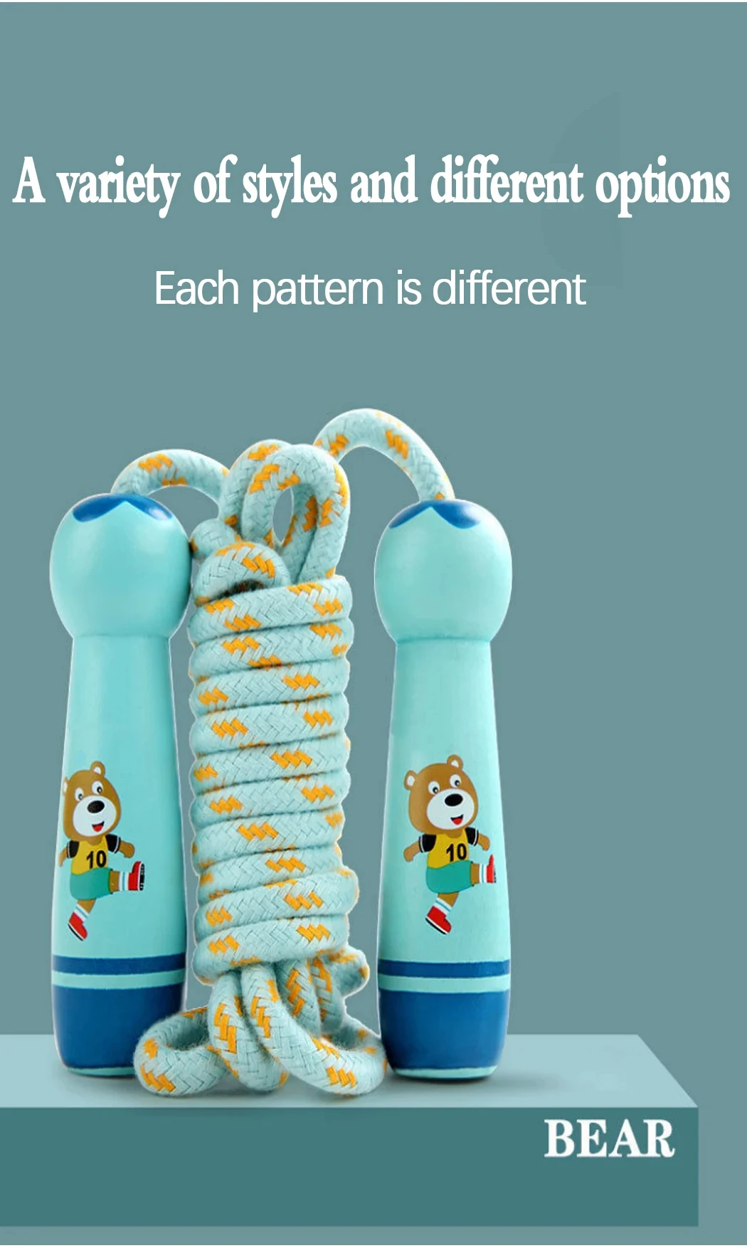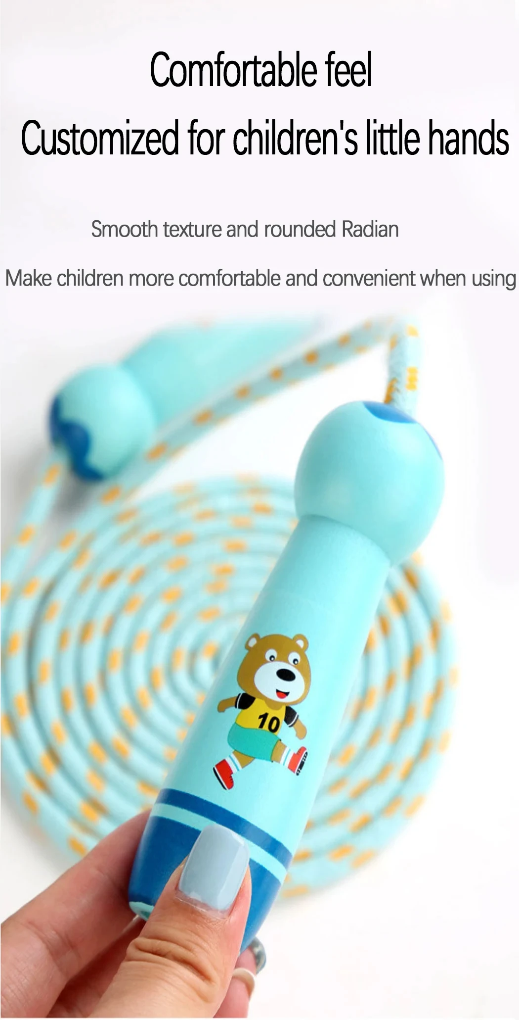 Children’s Sports Adjustable Cotton Rope Ropes Sport Fitness Lovely Cartoon Skipping Natural Wooden Handle Fillet Design