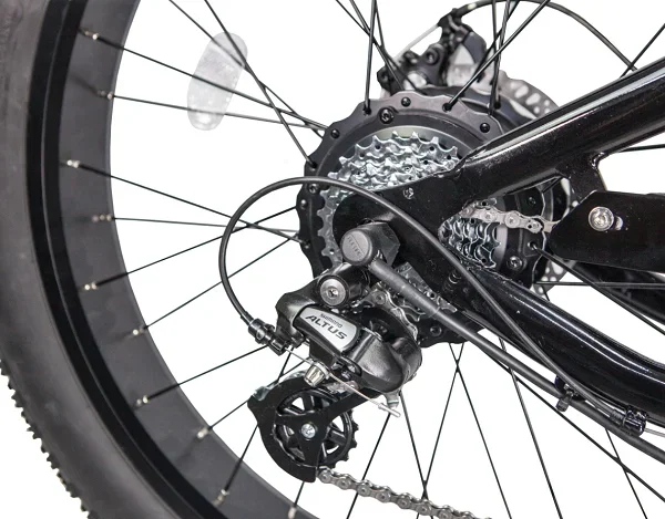 The Shimano Altus rear derailleur features an advanced light-action, long-cage design with Teflon-coated bushings.