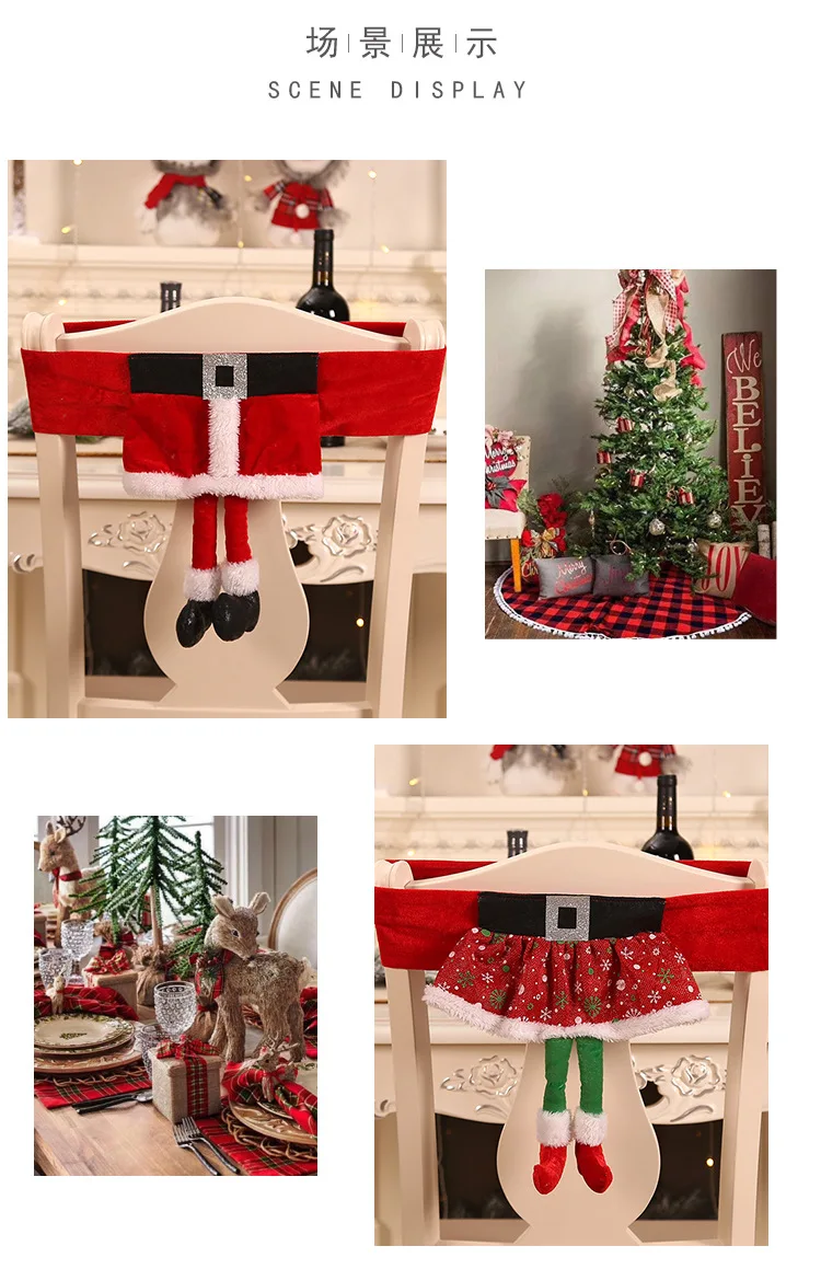 Christmas Chair Cover Santa Belt Chair Covers Christmas Elf Seat Cover Girl Dress Home Table Dinner Chair Seat Cover Decoration