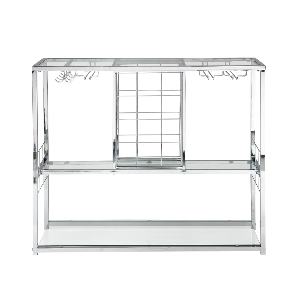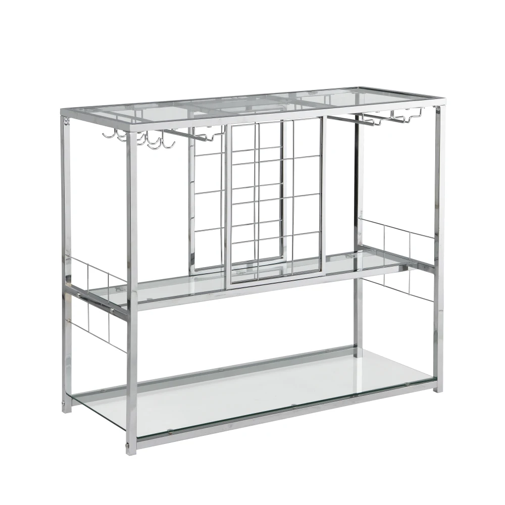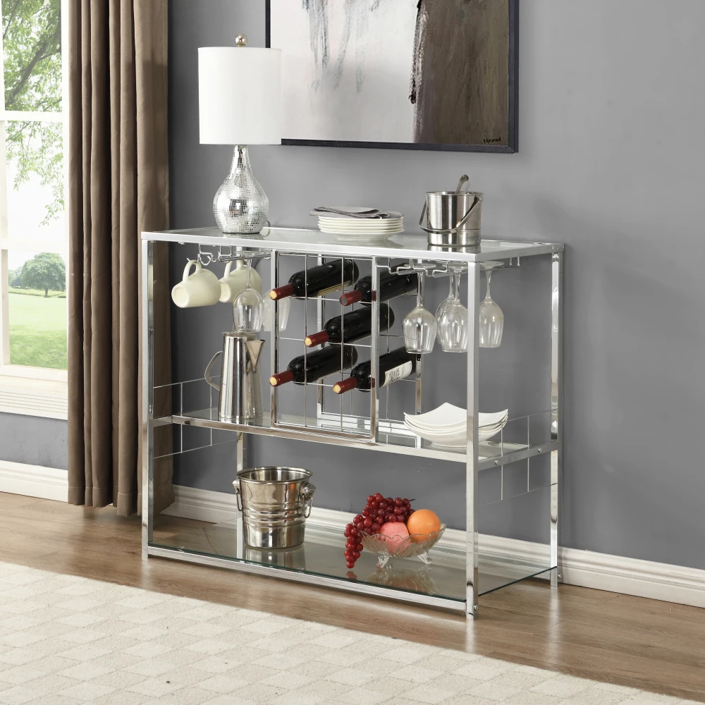 Chrome Wine Rack Shaped Industrial Freestanding Floor Bar Cabinets for Liquor and Glasses Storage Display Stand Organizer Bar